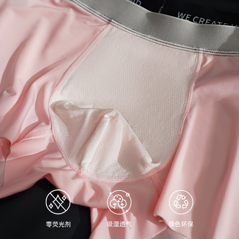 YOIKOOBEAN高级感黑粉缎面男士内裤男生冰丝新款无痕平角四角短裤