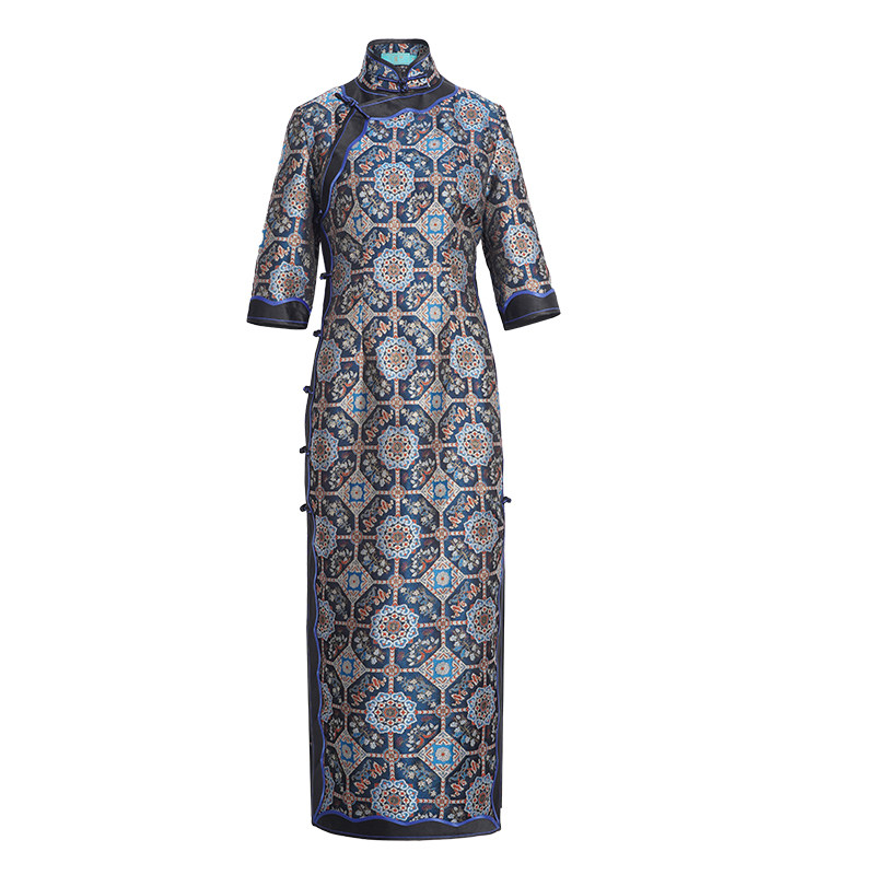 复古桑蚕丝宋锦旗袍长款炸街