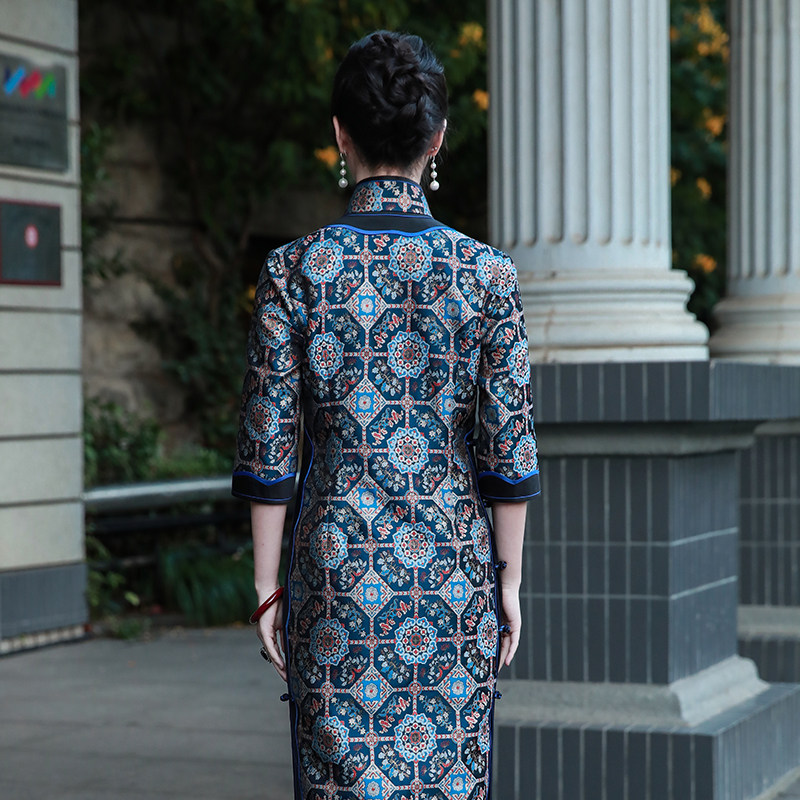 鎏金宝相三重门宋锦旗袍2026新款冬秋冬高端大气上档次桑蚕丝妈妈