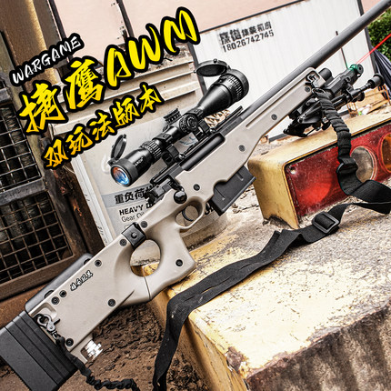 捷鹰AWM双用版拉栓抛壳玩具枪金属男孩狙击软弹枪成人发射器模型
