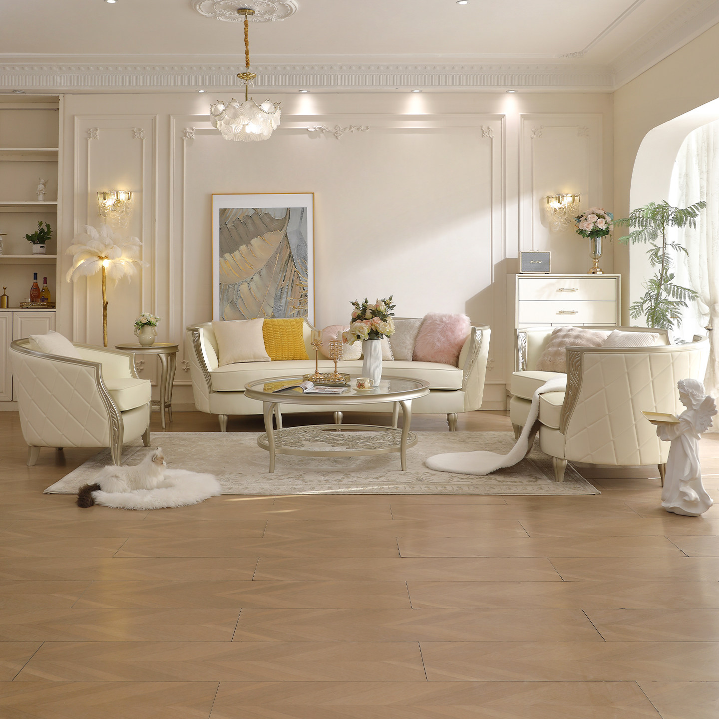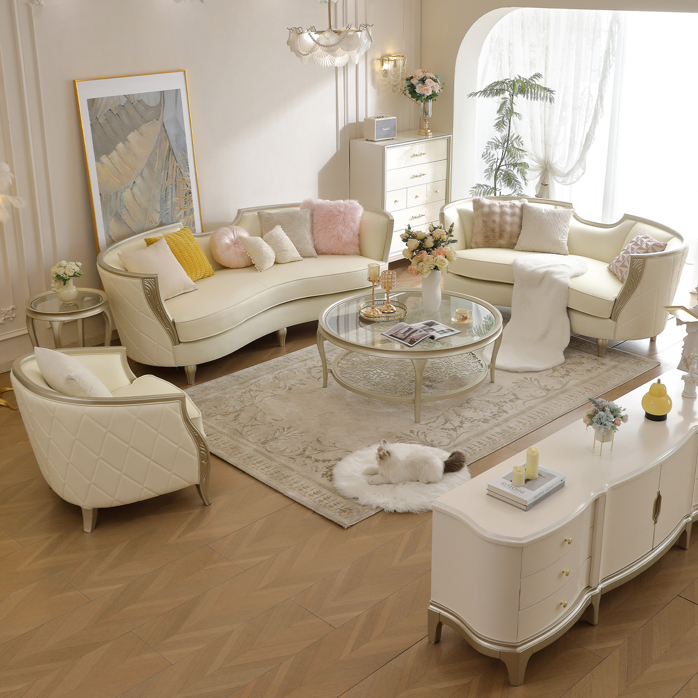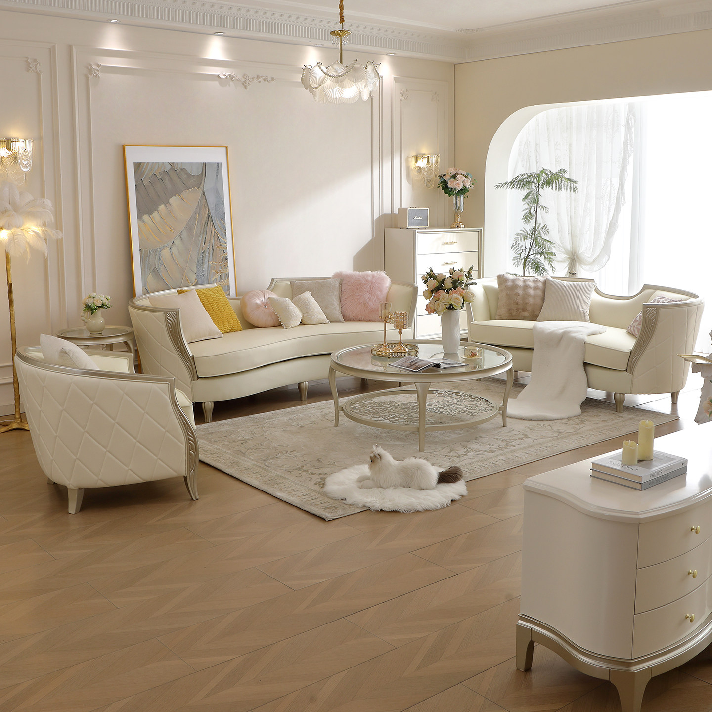 美式轻奢真皮沙发客厅123组合实木沙发现代简约欧式高端成套沙发