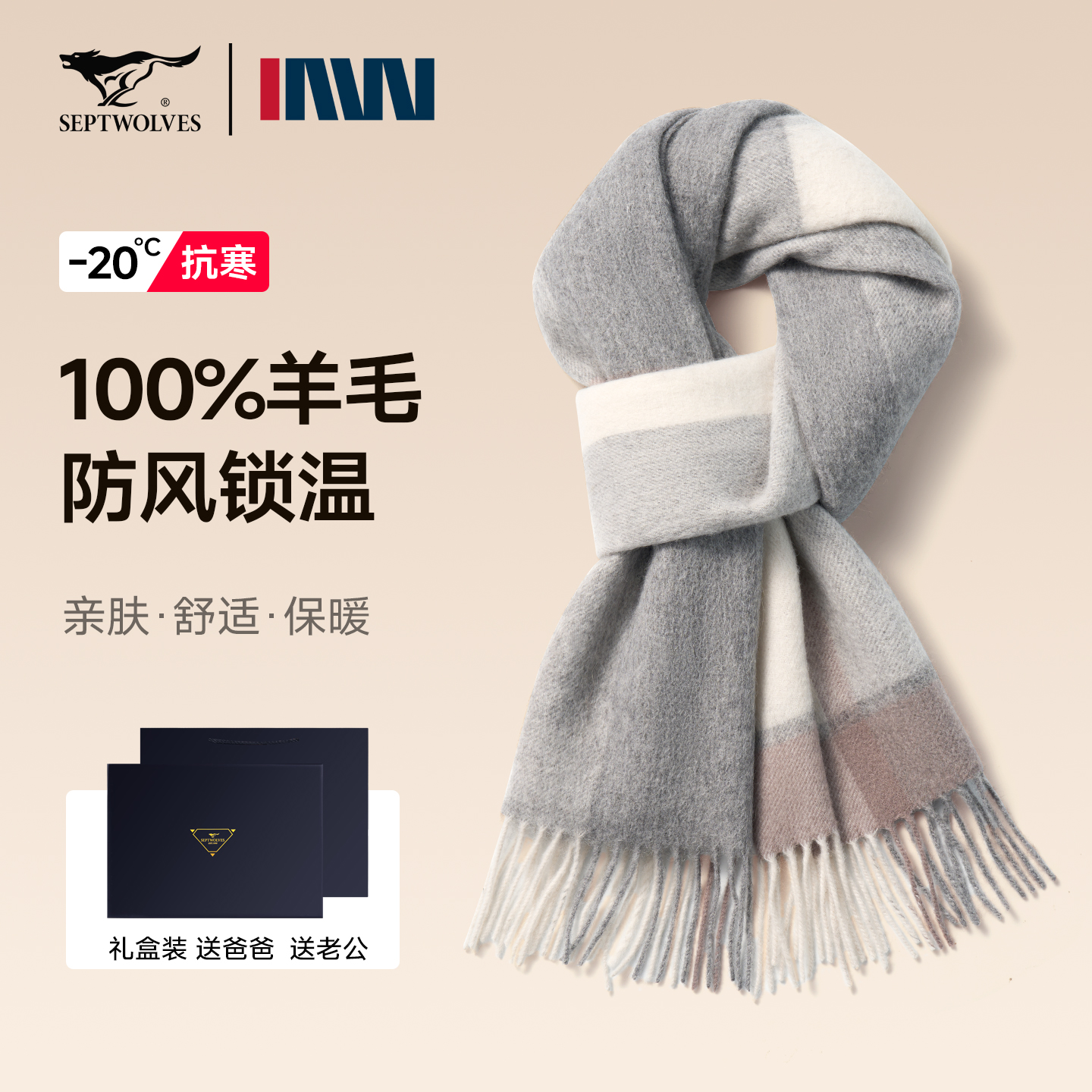 七匹狼围巾女款秋冬季保暖100%羊毛围脖披肩女外搭2025新款送女友