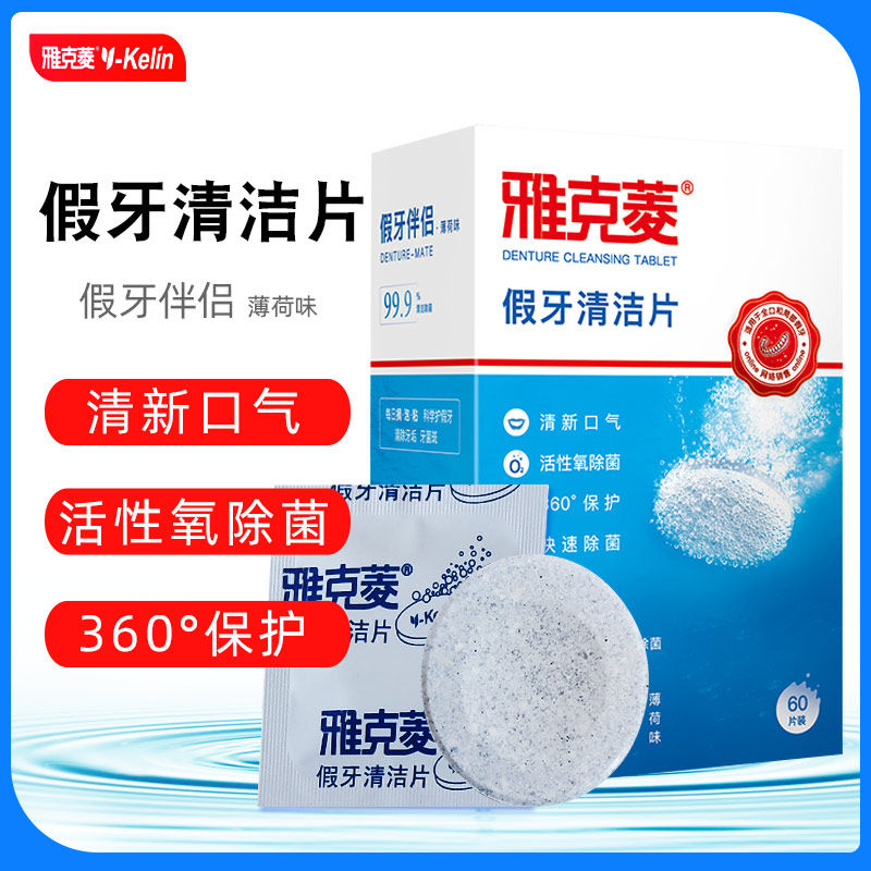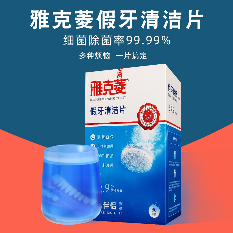 雅克菱假牙清洁片120片洗白假牙清洁剂水液泡腾片消毒异味臭口气