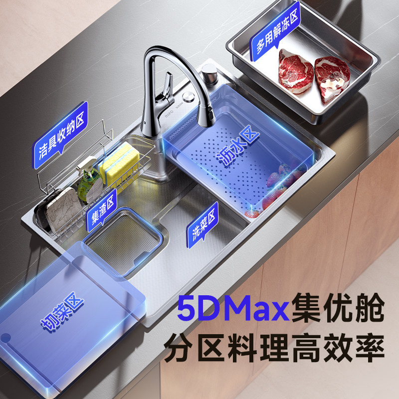 日丰集优pro厨房水槽304不锈钢洗菜盆瀑布大单槽日式洗碗台下盆