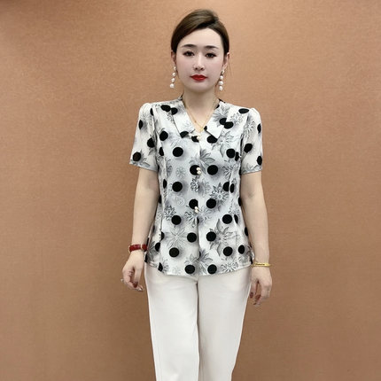 时尚小衫夏季新款短袖T恤显瘦舒适透气百搭减龄洋气中老年妈妈装