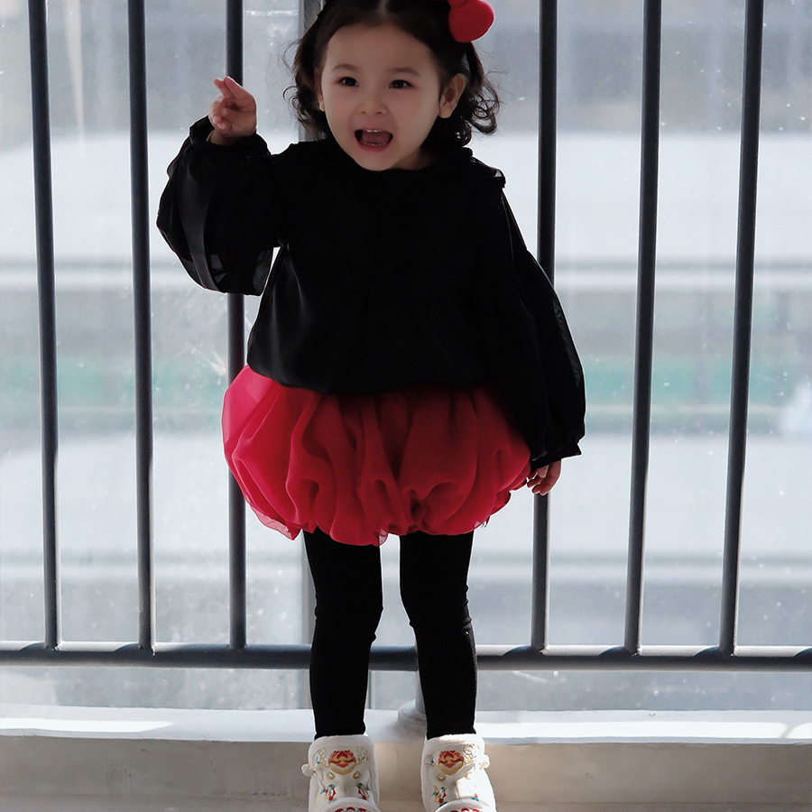 粗腿女童黑色仙气飘飘春秋圆领纯色长袖韩版衬衫内搭打底衫上衣