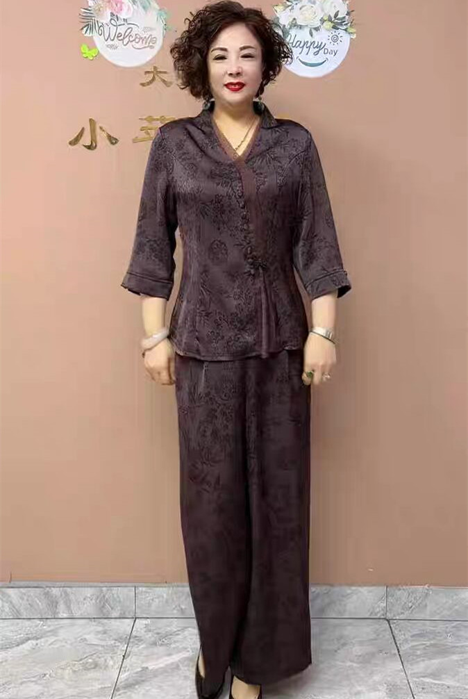 2024真丝套装新款春夏高端桑蚕丝显瘦阔腿裤大码气质减龄女两件套