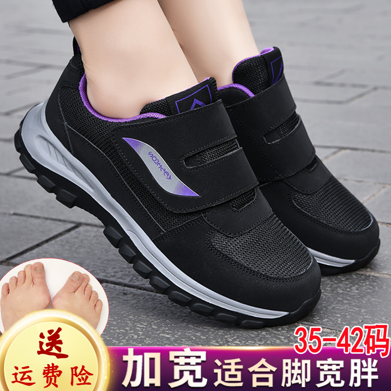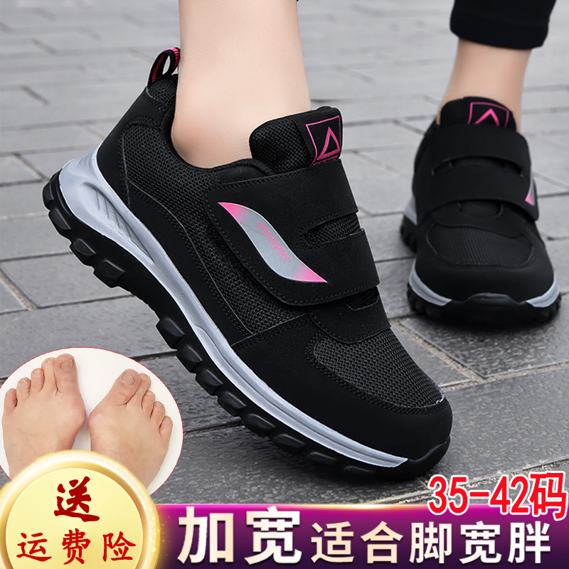 老人健步鞋女款魔术贴软底舒适跑步鞋中老年宽松鞋子运动鞋妈妈鞋