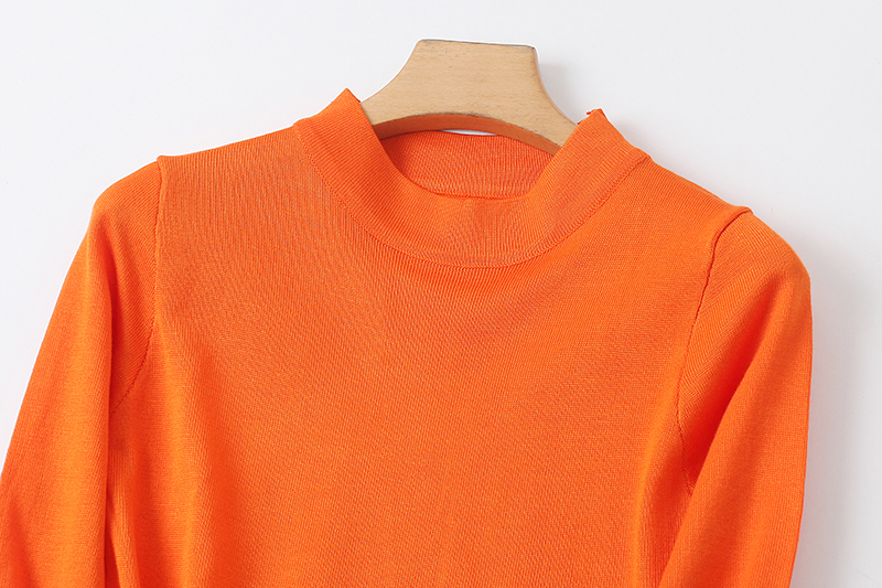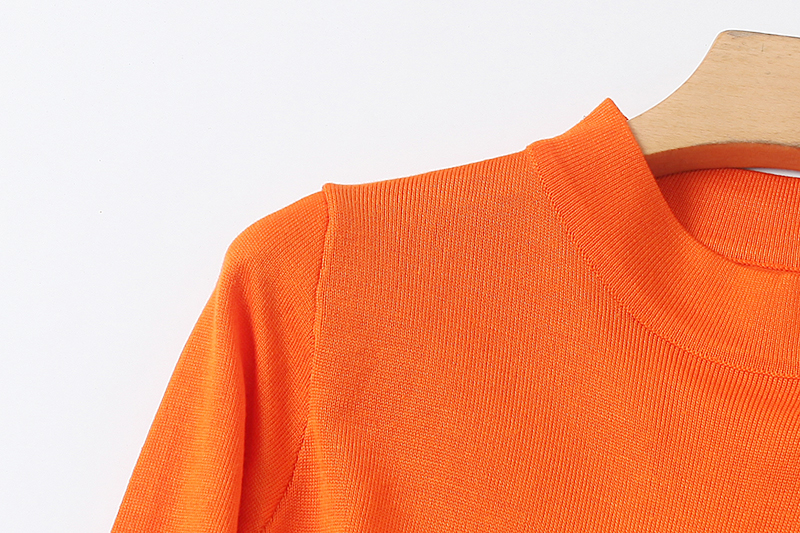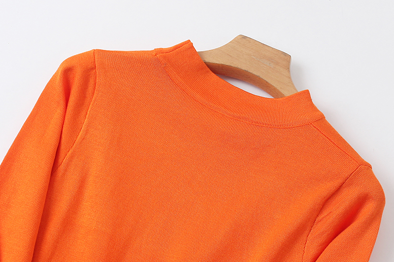 外单立领针织褶皱连衣裙夏季新款长袖包臀女显瘦中长款裙子K/18-2