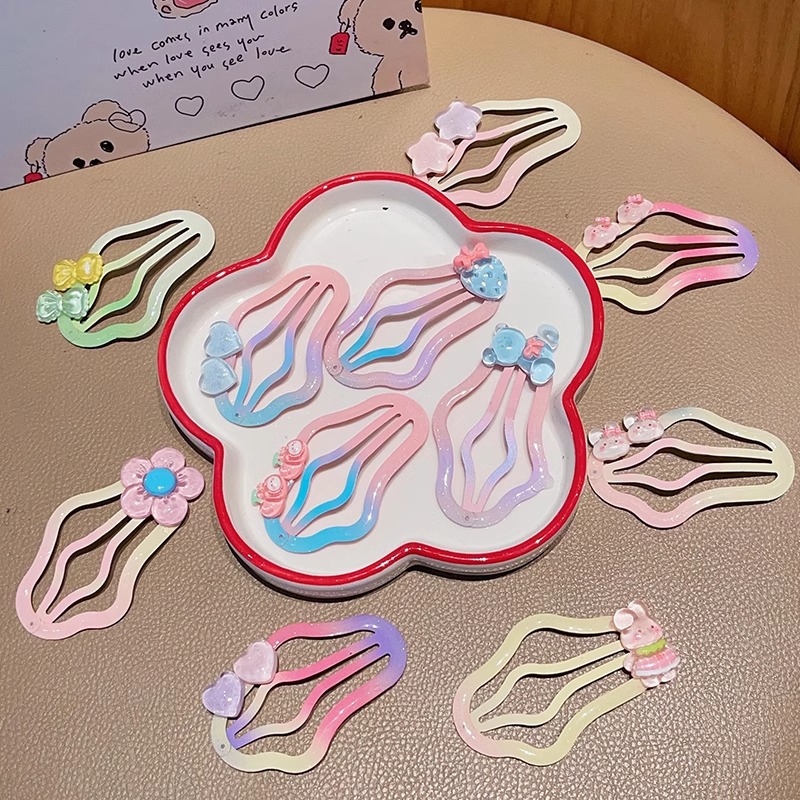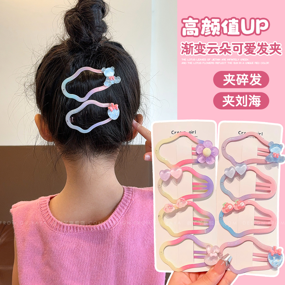 儿童果冻色花朵发夹宝宝前额刘海碎发夹bb夹小女孩不伤发头饰发卡