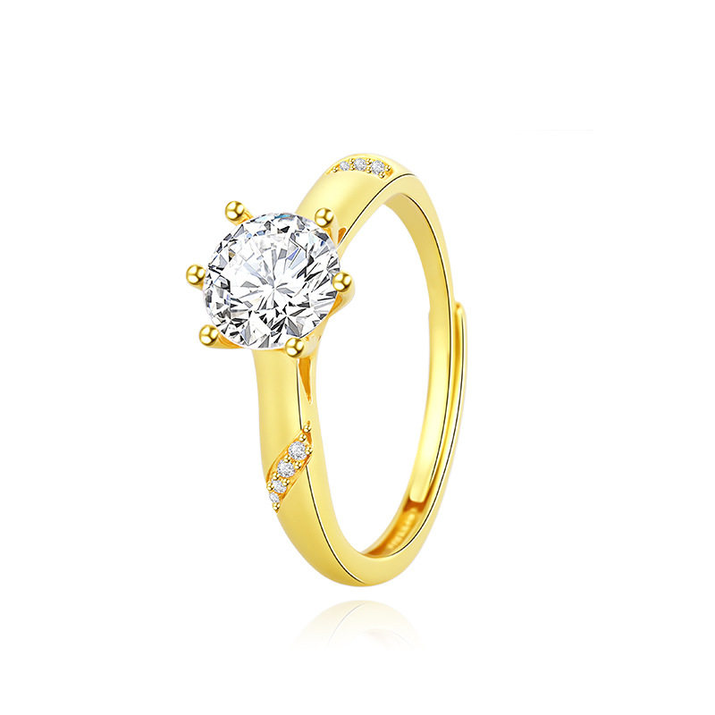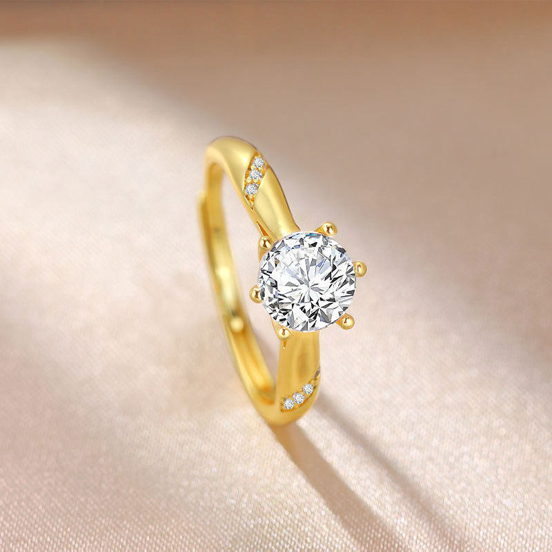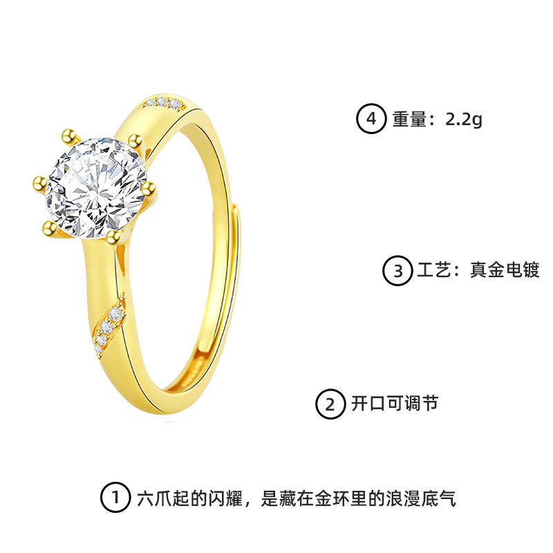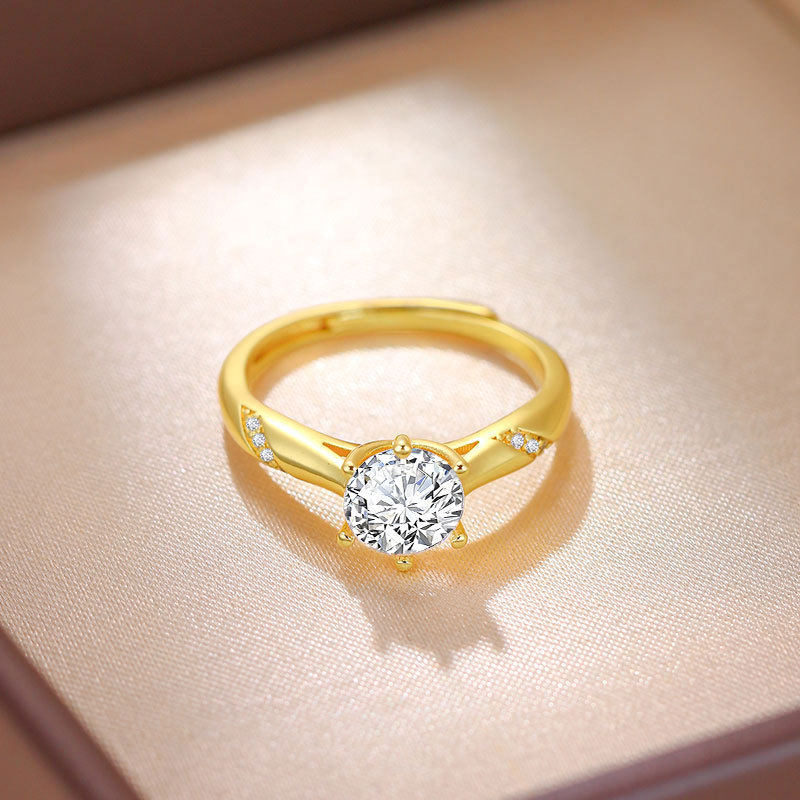 TEMU热销仿真莫桑钻一克拉半壁江山戒指高端轻奢结婚钻戒送女友