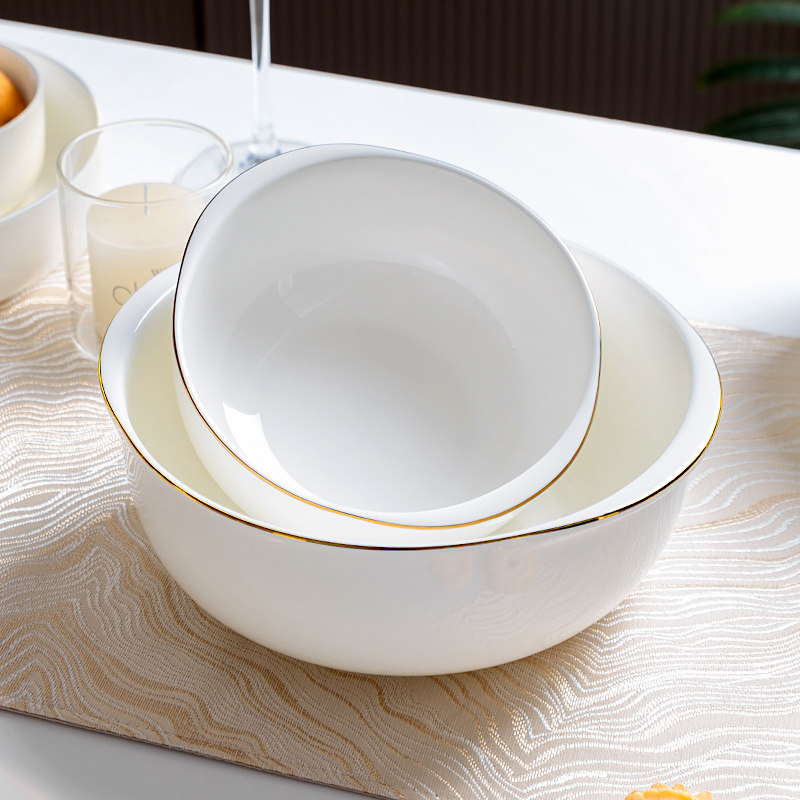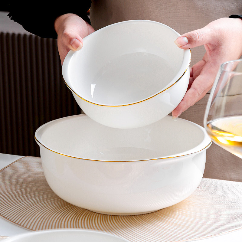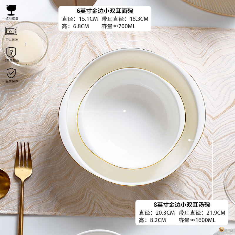 骨瓷金边小双耳面碗大汤碗面碗骨瓷简约可微波陶瓷盛汤盆螺蛳粉碗