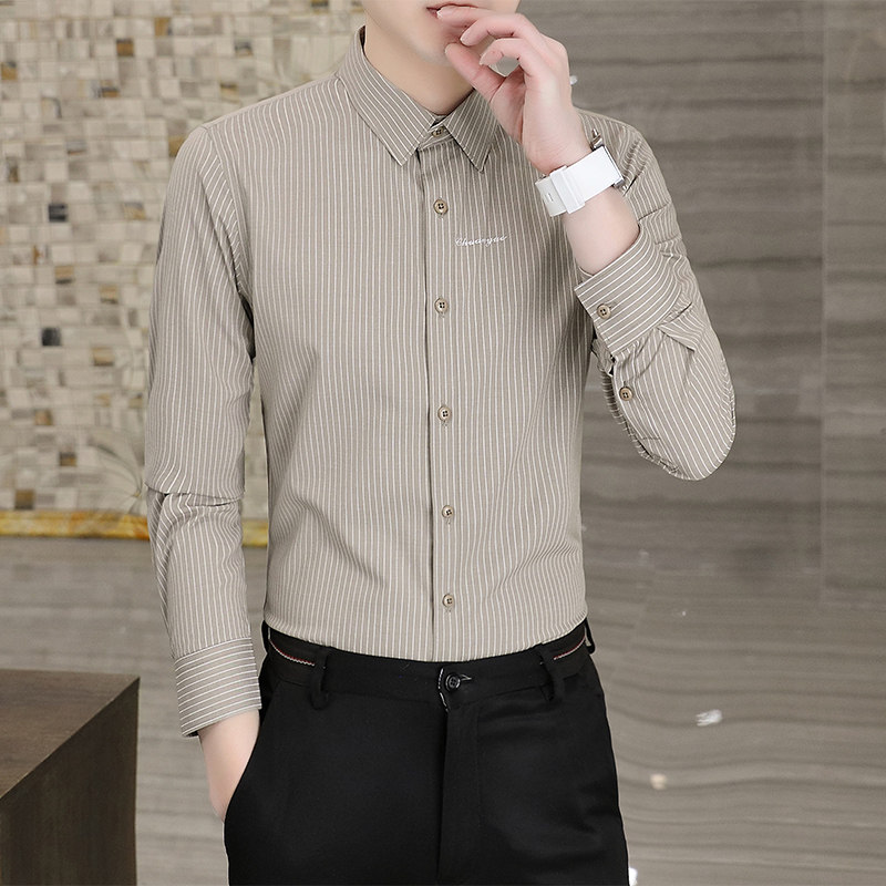 条纹寸衫韩版修身春夏季百搭长袖商务休闲衬衫男士装潮流打底衬衣
