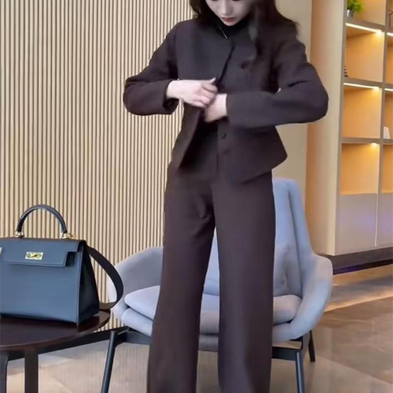 欧洲站欧货小个子加棉套装女2024年秋冬款短外套显瘦阔腿裤两件套