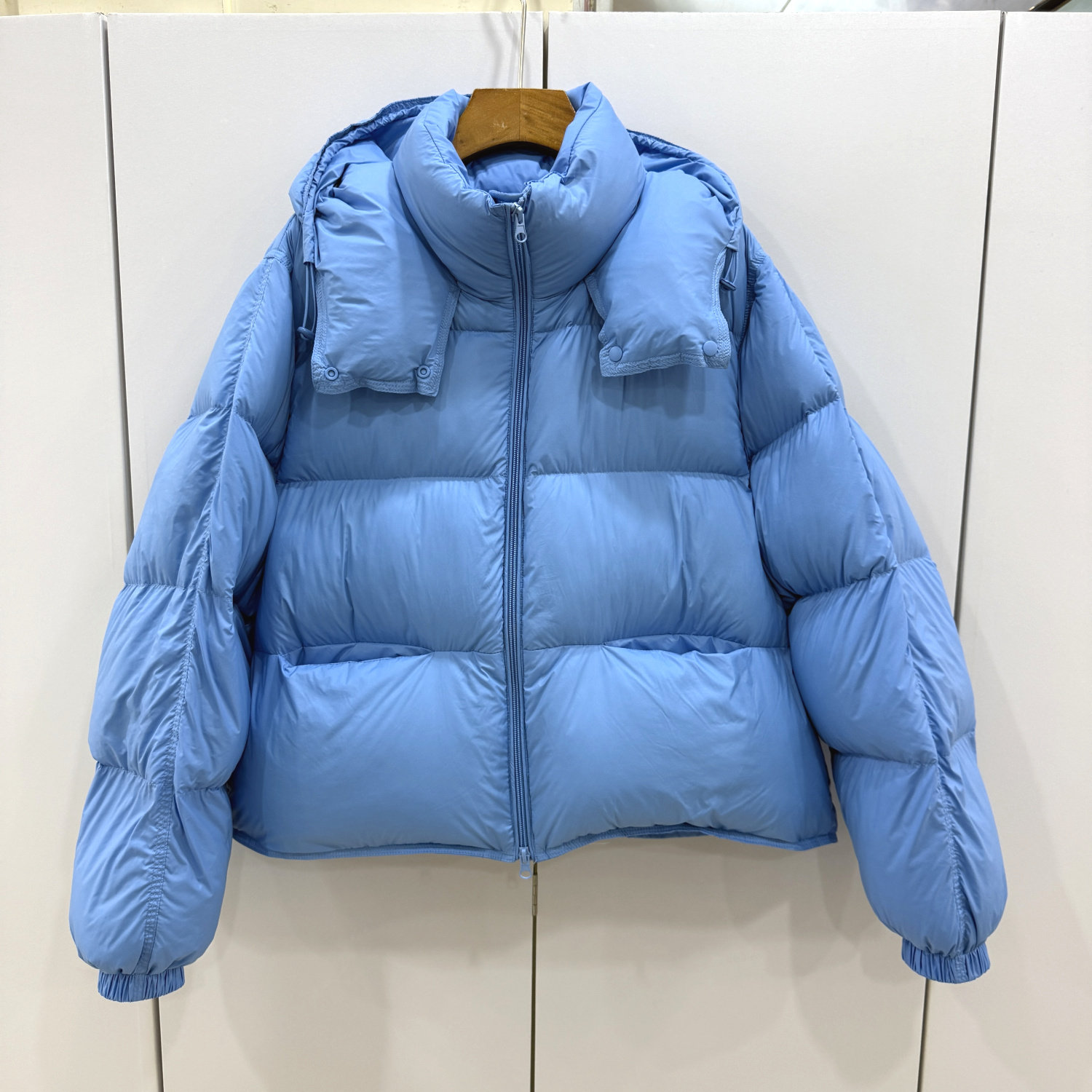 8812欧洲站2025冬双拉链抽绳连帽休闲宽松减龄云朵泡芙亮色羽绒服