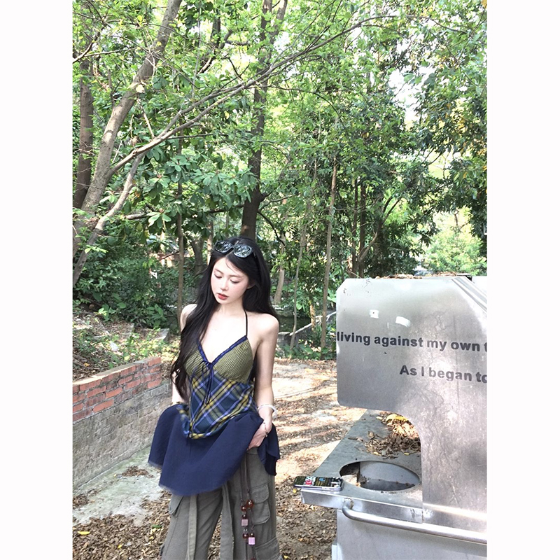 复古辣妹小众吊带背心女拼接上衣