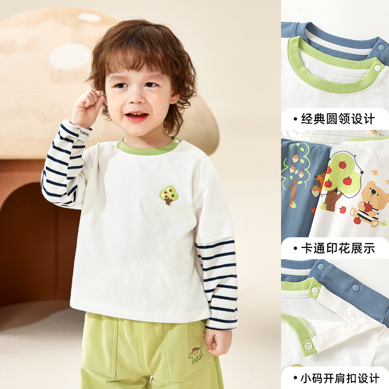 婴儿衣服男童假两件长袖t恤秋装春秋款女童宝宝小童打底衫上衣
