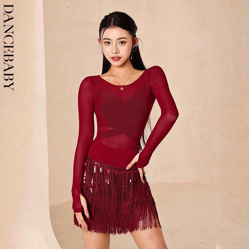 dancebaby专业拉丁舞上衣女新款跳舞衣服舞衣国标交谊舞服成人217