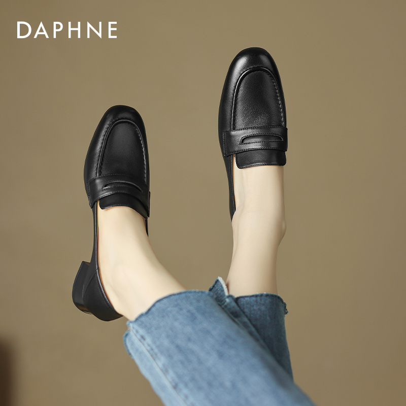 达芙妮真皮乐福鞋女2025新款英伦风一脚蹬小皮鞋通勤工作粗跟单鞋