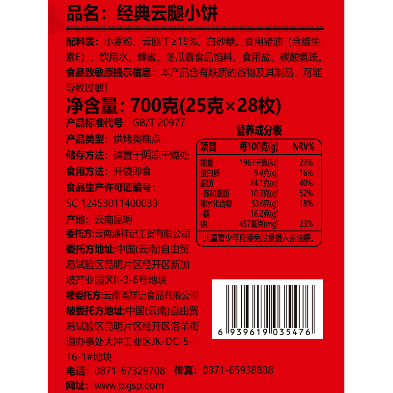 潘祥记云腿小饼酥皮火腿月饼云南特产中式糕点心中秋月饼礼盒送礼