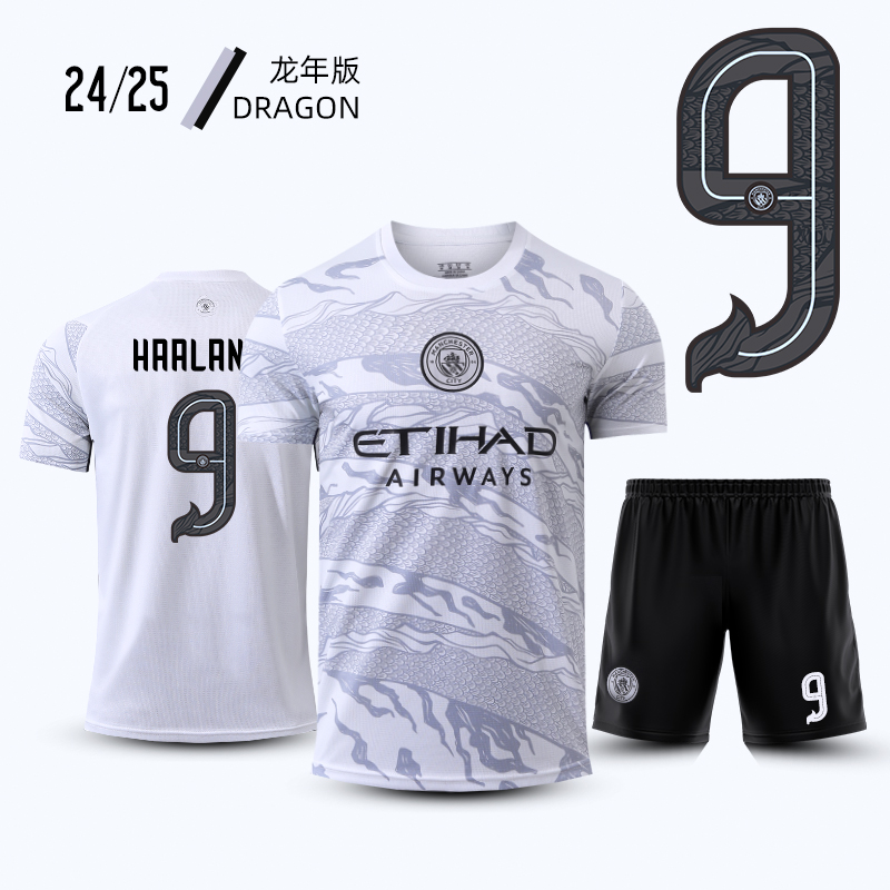 2425曼城球衣龙年足球服运动套装男儿童印哈兰德客场欧冠队服定制