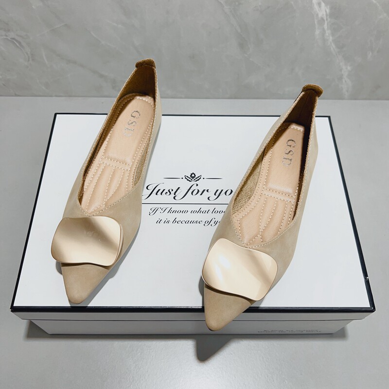 软皮软底方扣浅口温柔鞋