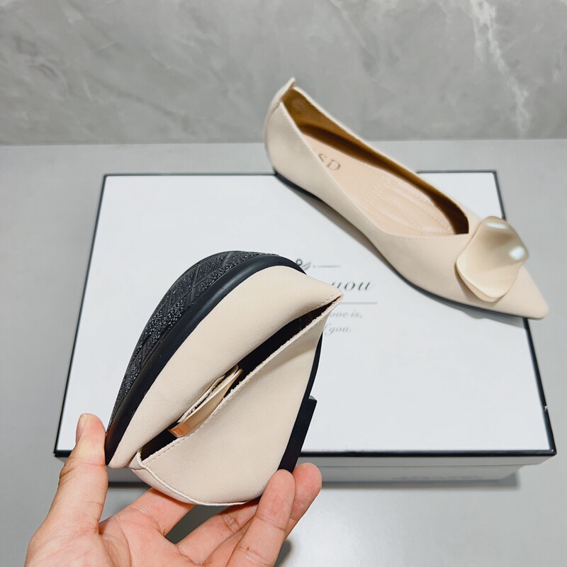 法式尖头单鞋女2025春秋新款软皮软底方扣浅口温柔平底仙女风瓢鞋