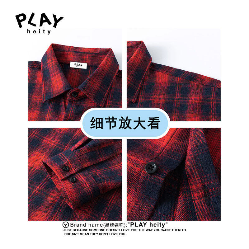 PLAY HEITY 官方衬衫男女2024春秋新款港风情侣格子衬衣休闲外套