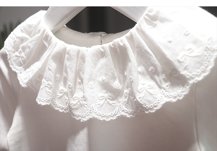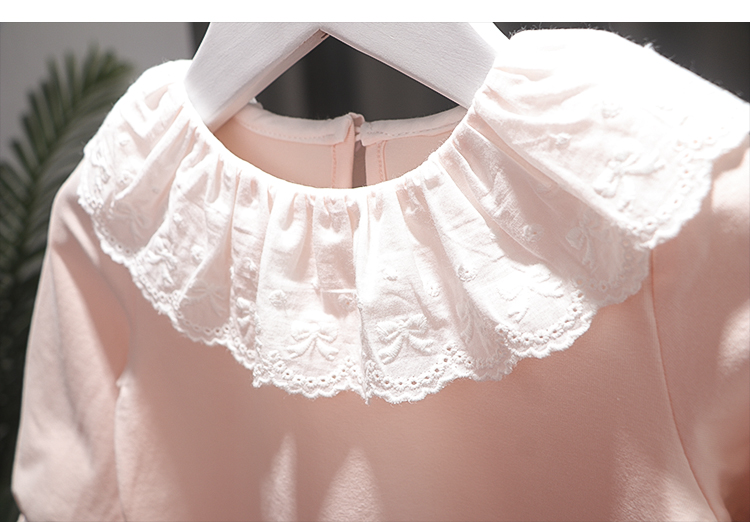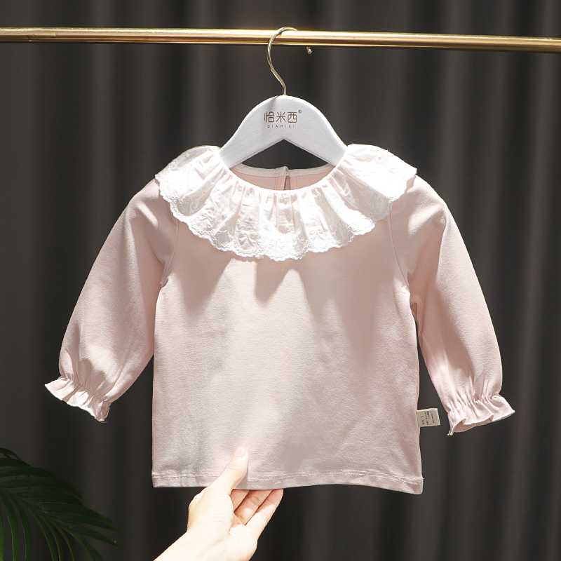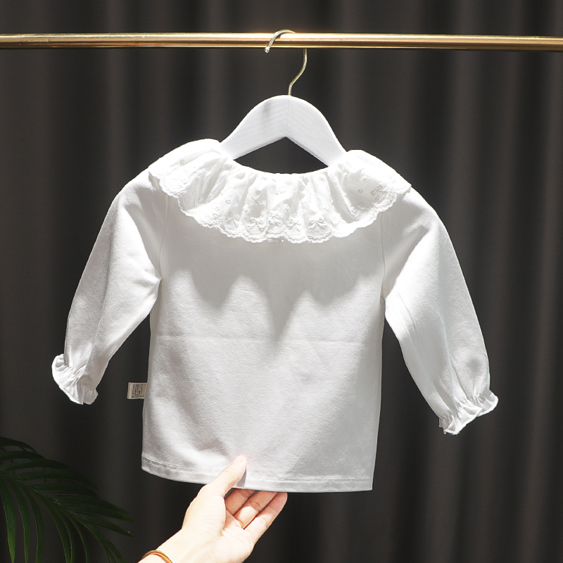 2024秋装新款女童蕾丝花边领打底衫女宝纯色百搭长袖T恤上衣小衫