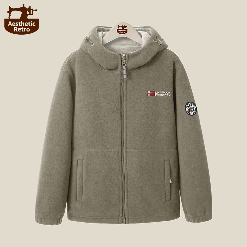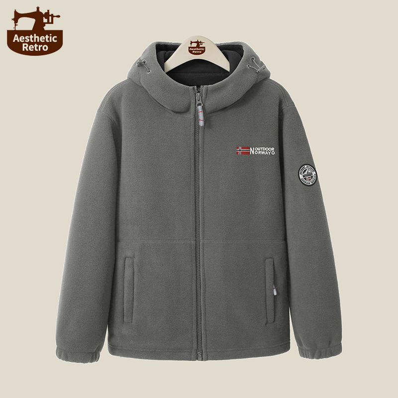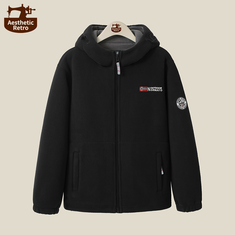 摇粒绒外套男秋冬季双面加绒加厚连帽卫衣开衫宽松防风保暖抓绒衣