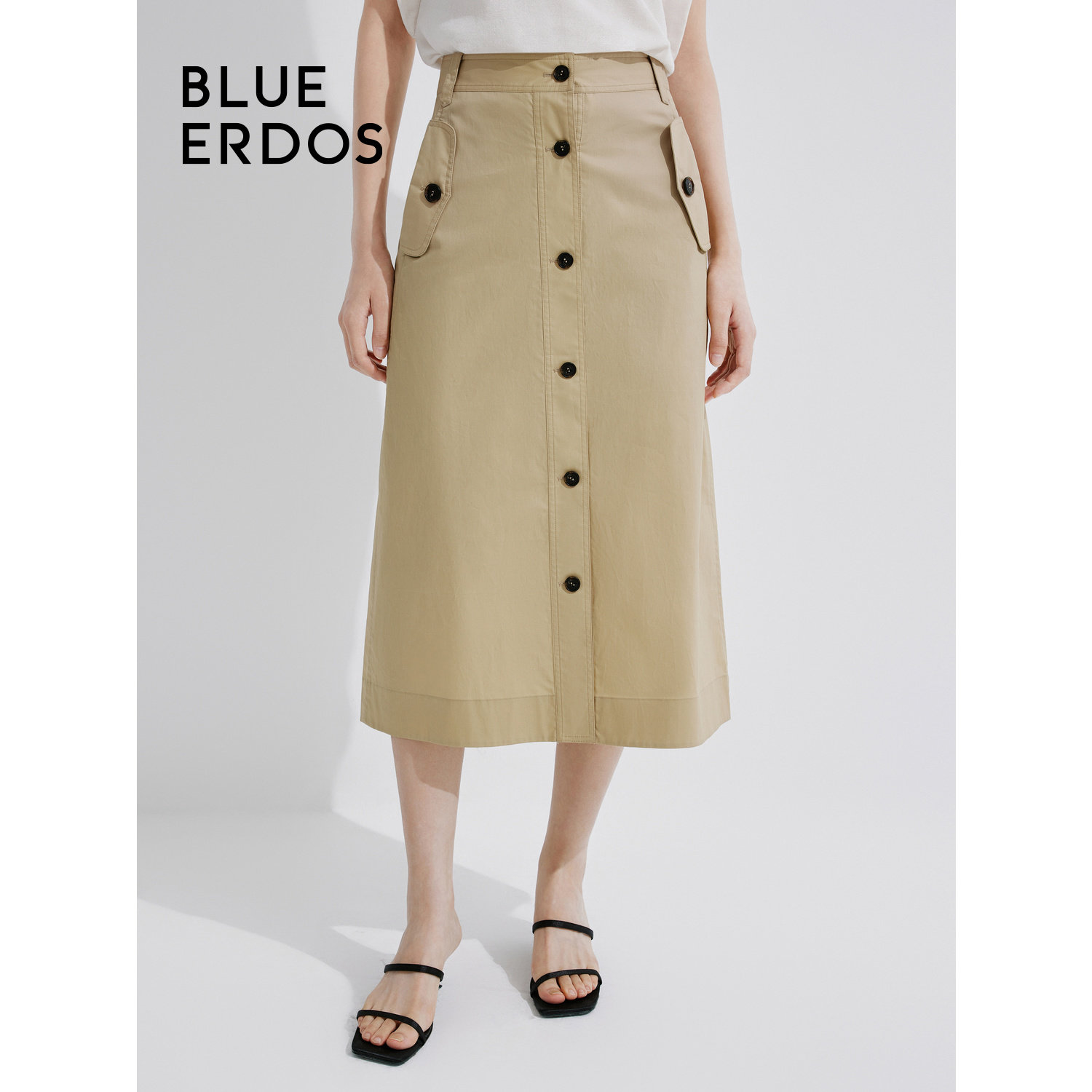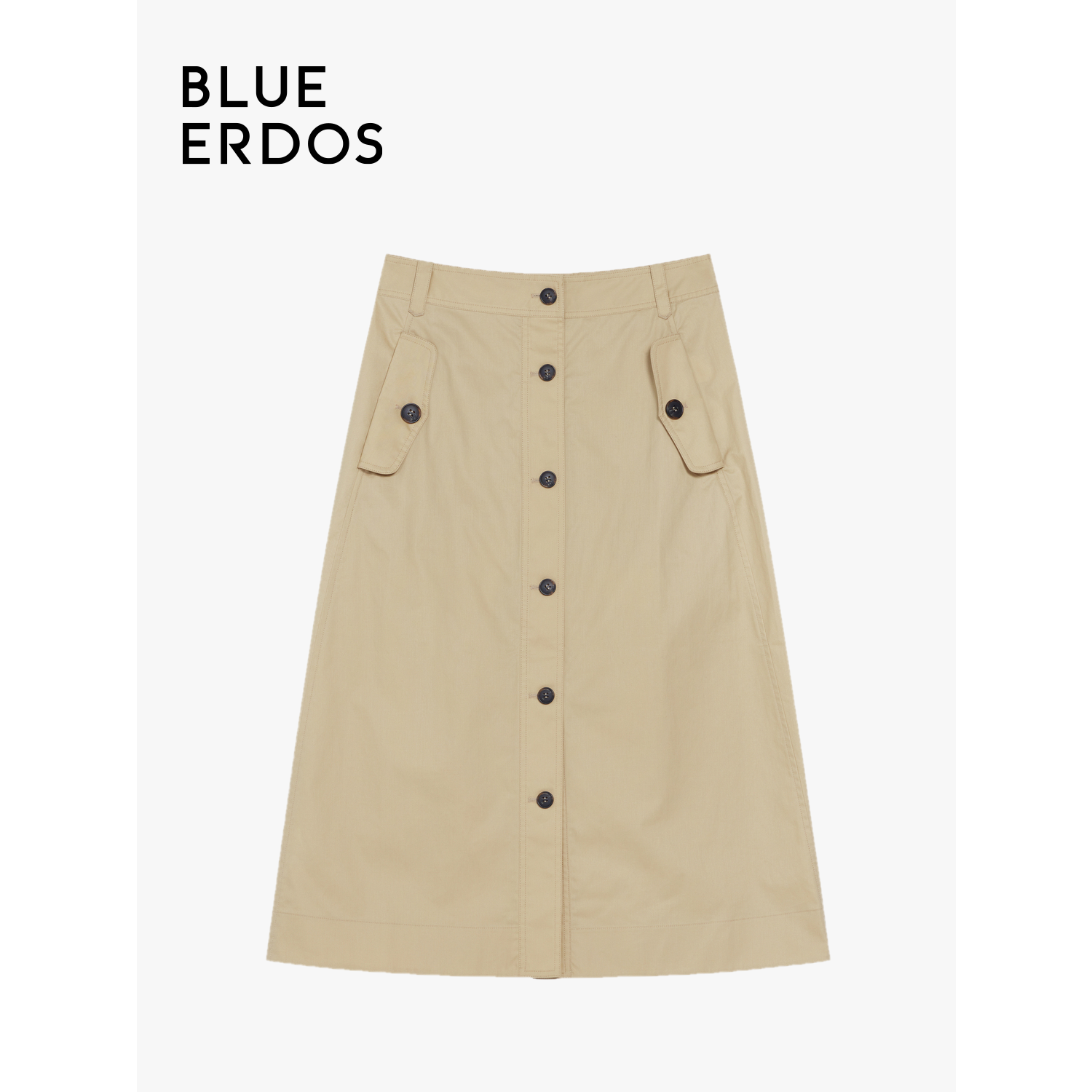 BLUE ERDOS 纯棉中长款纽扣设计A字半身裙B245M0020