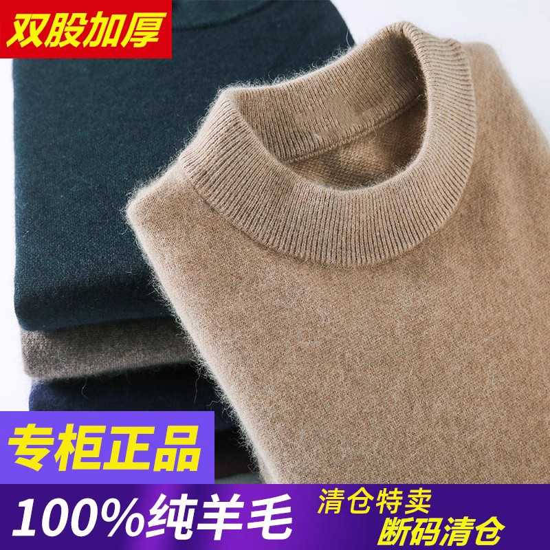 鄂尔多市产100%纯羊绒衫男高档中老年加厚保暖毛衣半高领羊毛衫