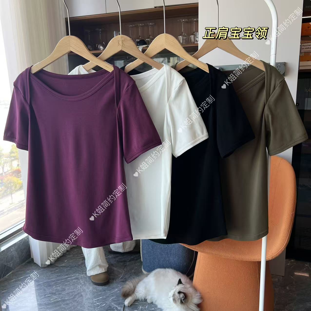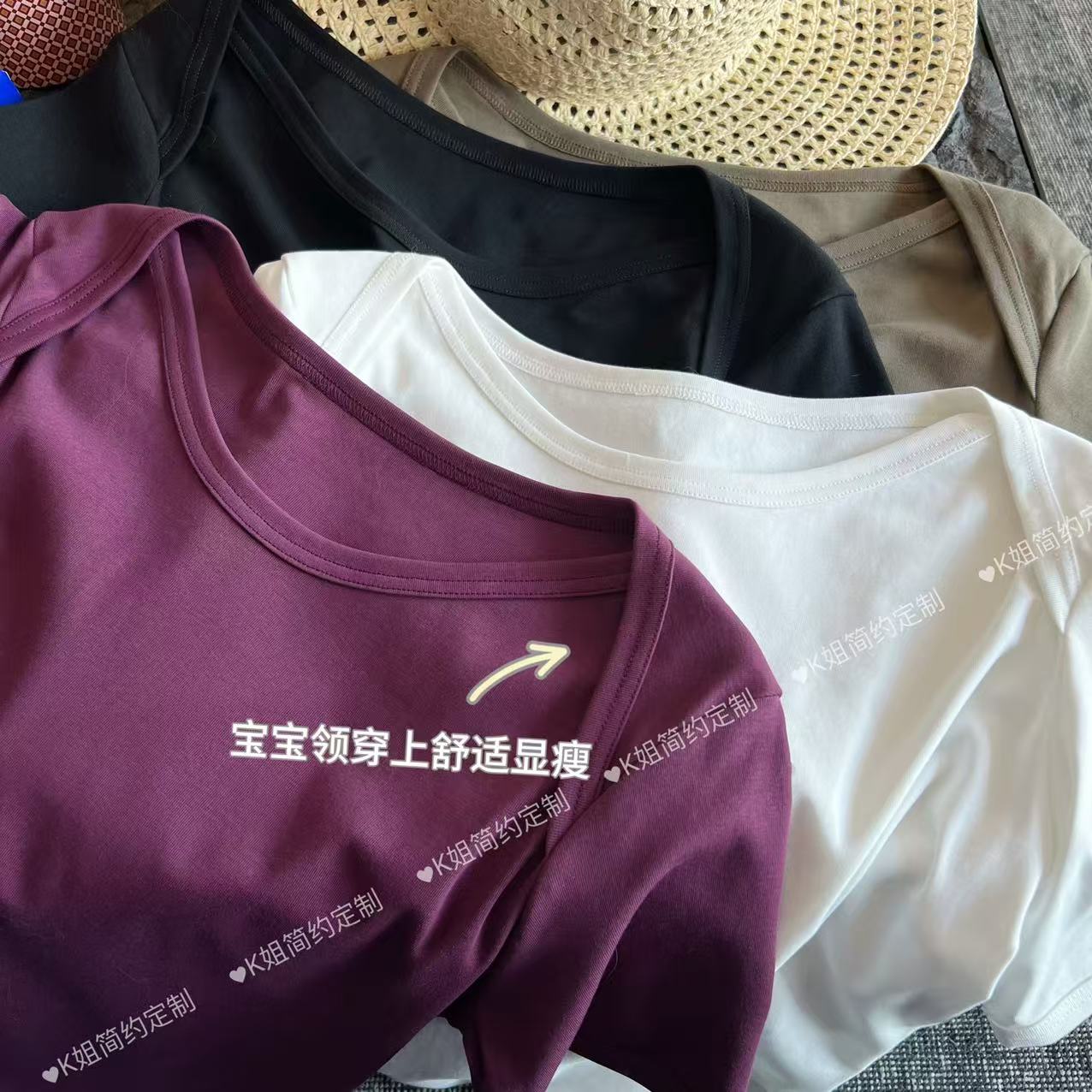 KK定制2025新款宝宝领短袖T恤女夏季纯棉百搭宽松显瘦正肩上衣