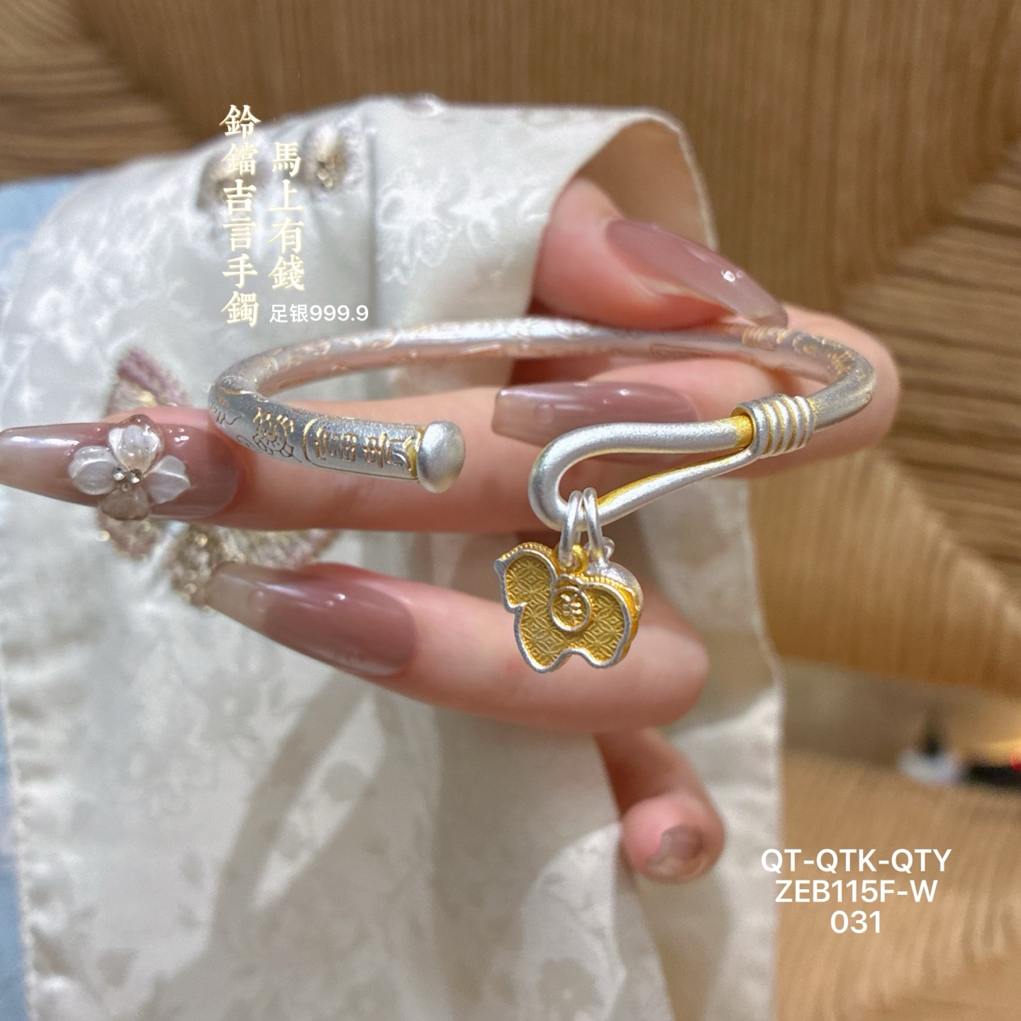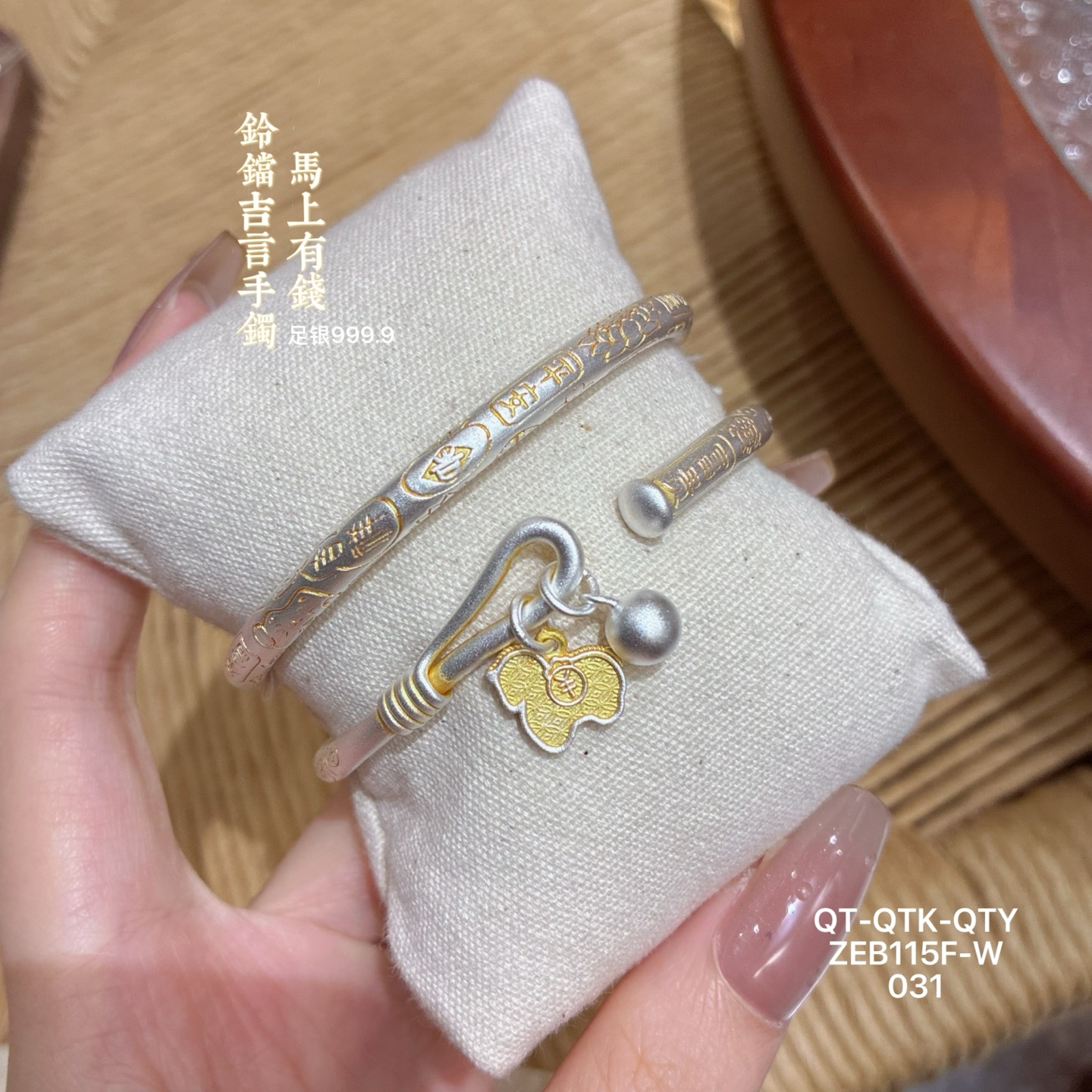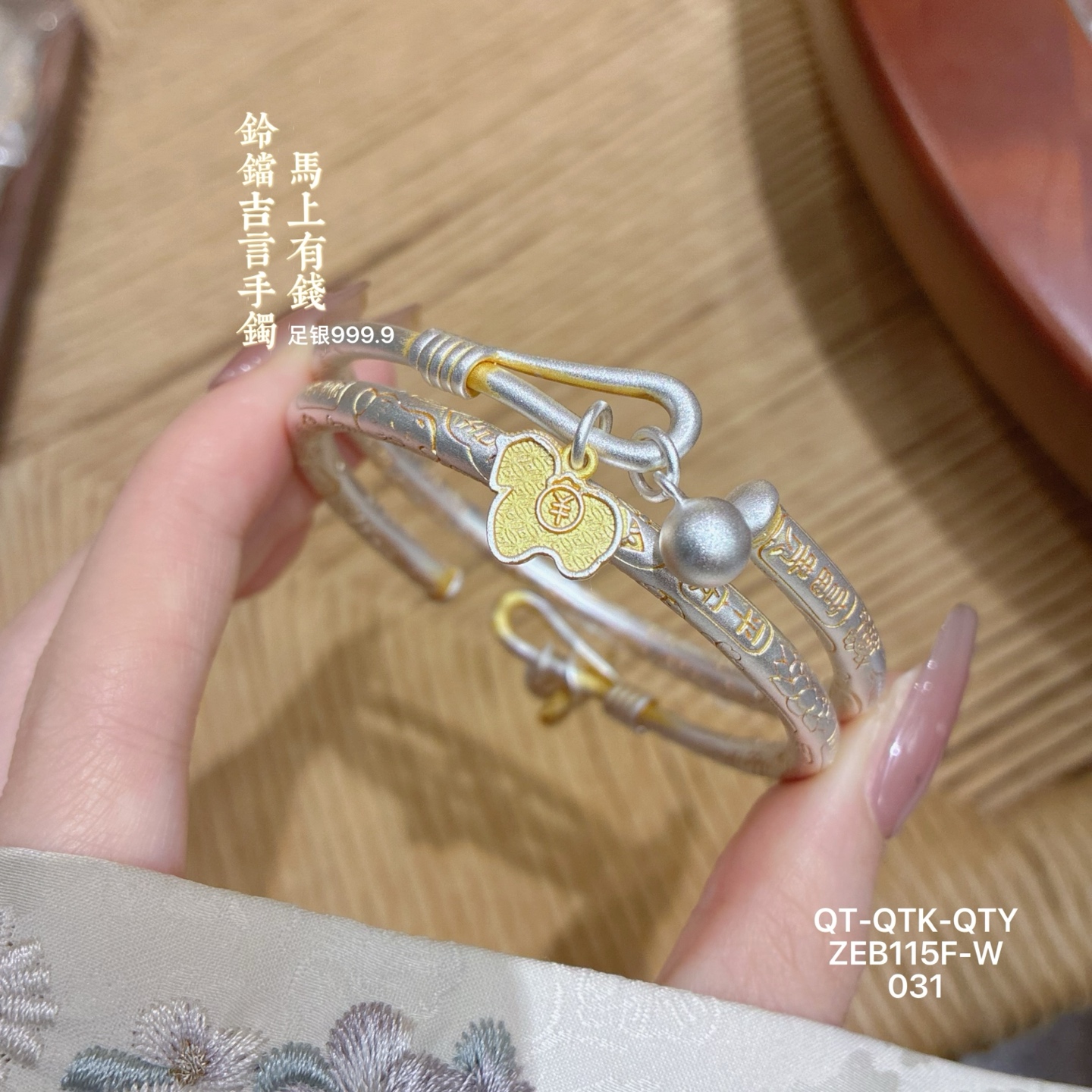 足银描金珐琅彩开口手镯铃铛吉言手镯饰品DIY配件纯银