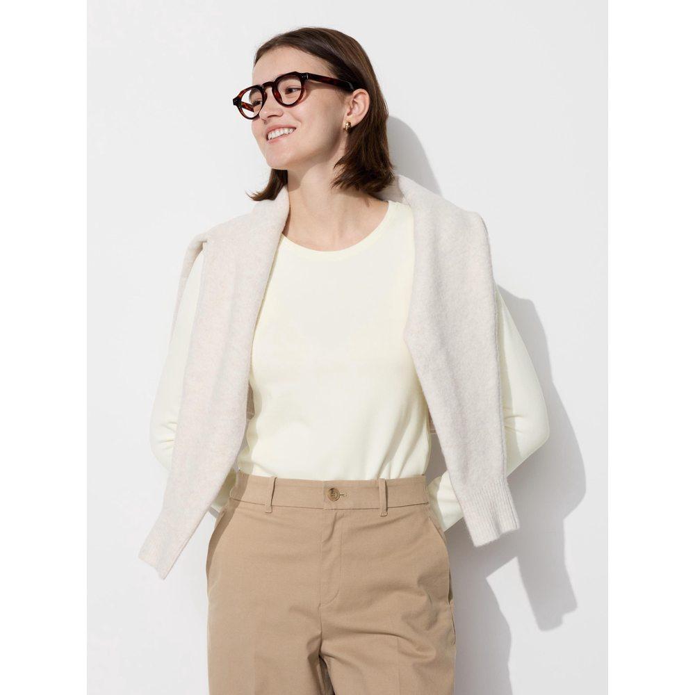 日潮跑腿UNIQLO优衣库 女款暖 HEATTECH 圆领 T 恤 01 OFF WHITE