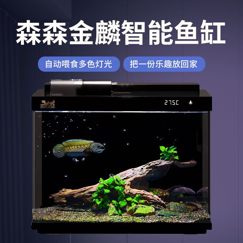 森森超白玻璃鱼缸客厅小型家用水族箱生态过滤制氧智能桌面一体缸