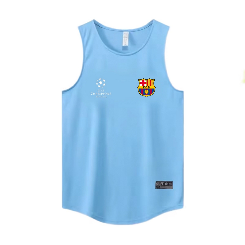 速干背心美式健身夏季欧冠足球巴萨俱乐部男士无袖透气宽松大码