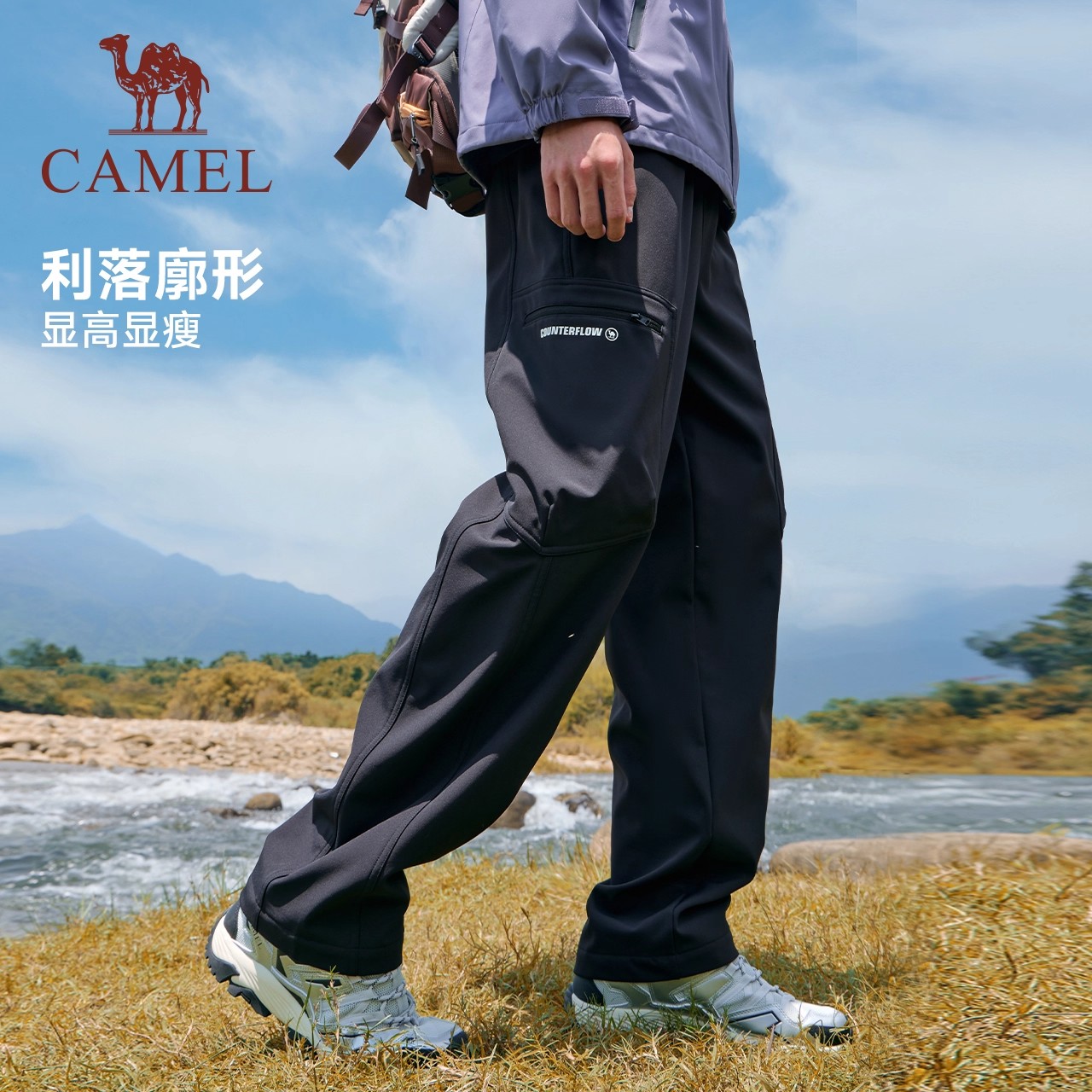 骆驼工装加绒裤男直筒伞兵裤宽松运动休闲户外防风防水保暖登山裤