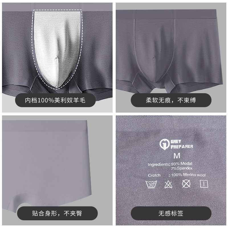 灰壳美利奴羊毛内裤抗菌透气