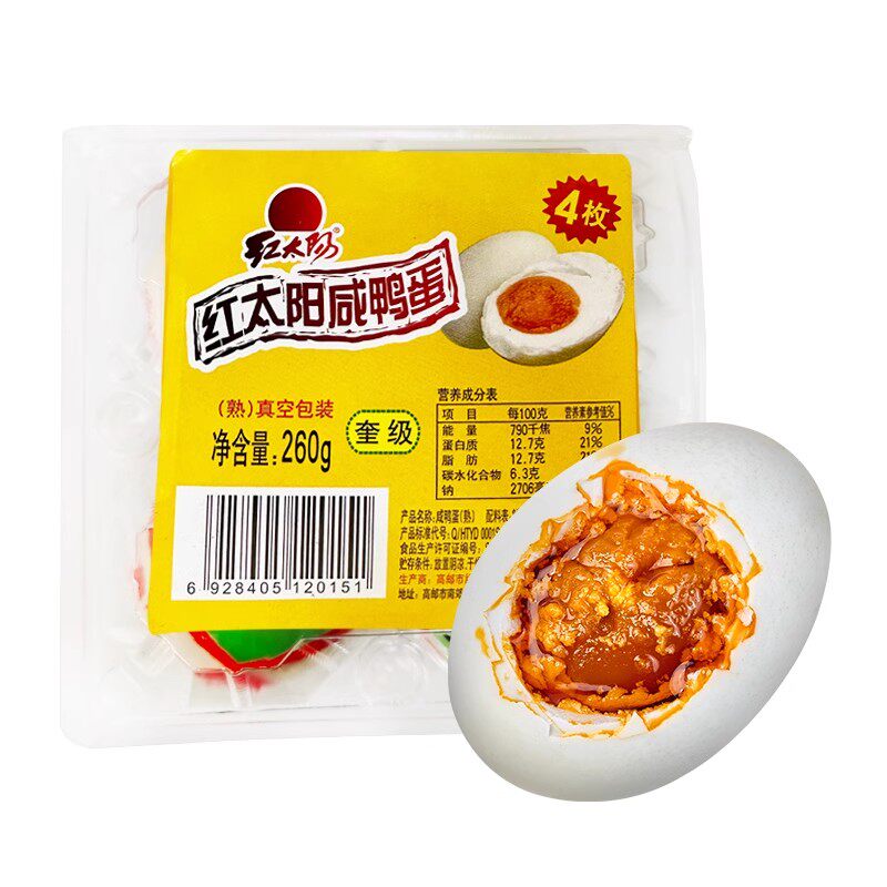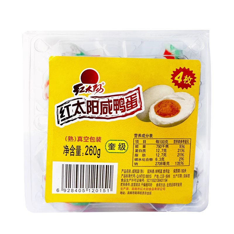 扬州特产正宗红太阳高邮咸鸭蛋盐蛋红心流油奎级真空塑盒包装即食