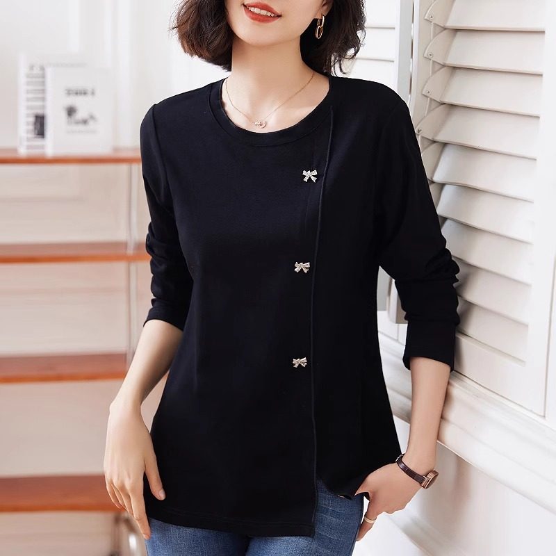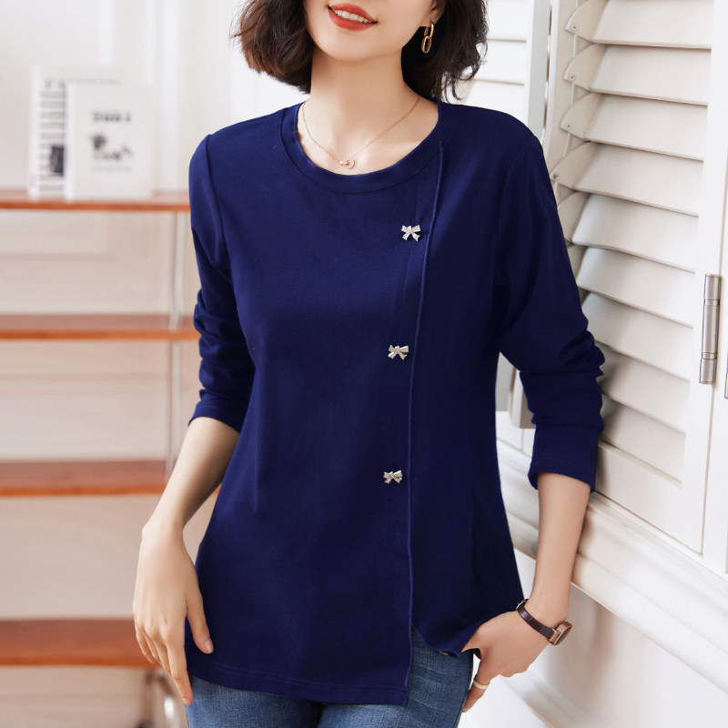 纯棉长袖t恤女装春秋新款洋气妈妈体恤衫大码胖mm宽松女士上衣服