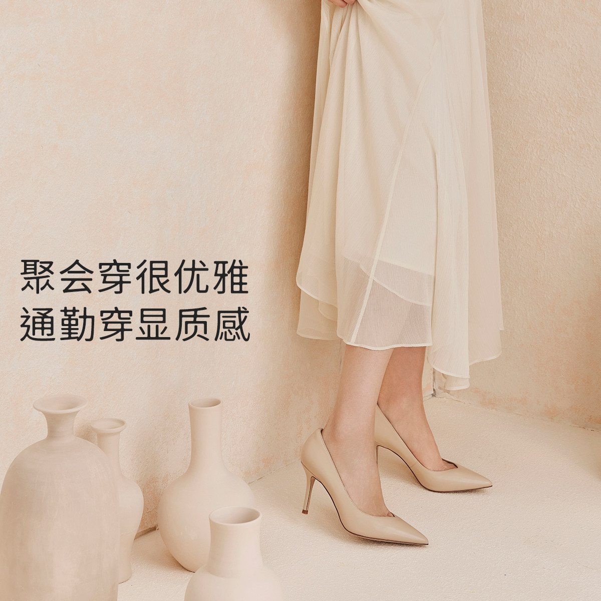 7or9高跟鞋2026春夏新款女鞋裸色尖头羊皮通勤职业细单鞋杏桃
