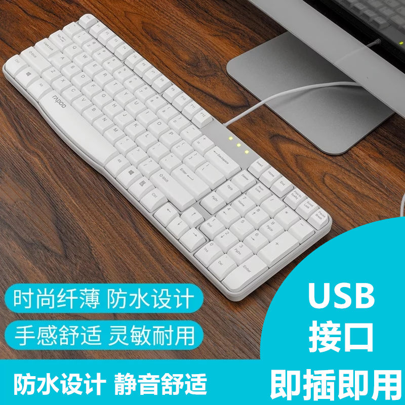 雷柏K130键盘电脑机笔记本家用办公外接USB有线防水静音游戏键盘