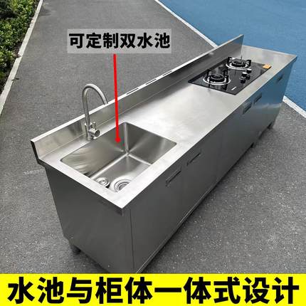 厨房不锈钢304台面工作台灶台操作储物水池水槽一体橱柜家用商用