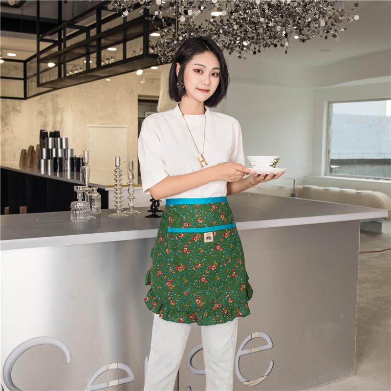 女士时尚家用做饭防污无袖纯棉围裙可爱餐厅咖啡店茶叶店工作服包