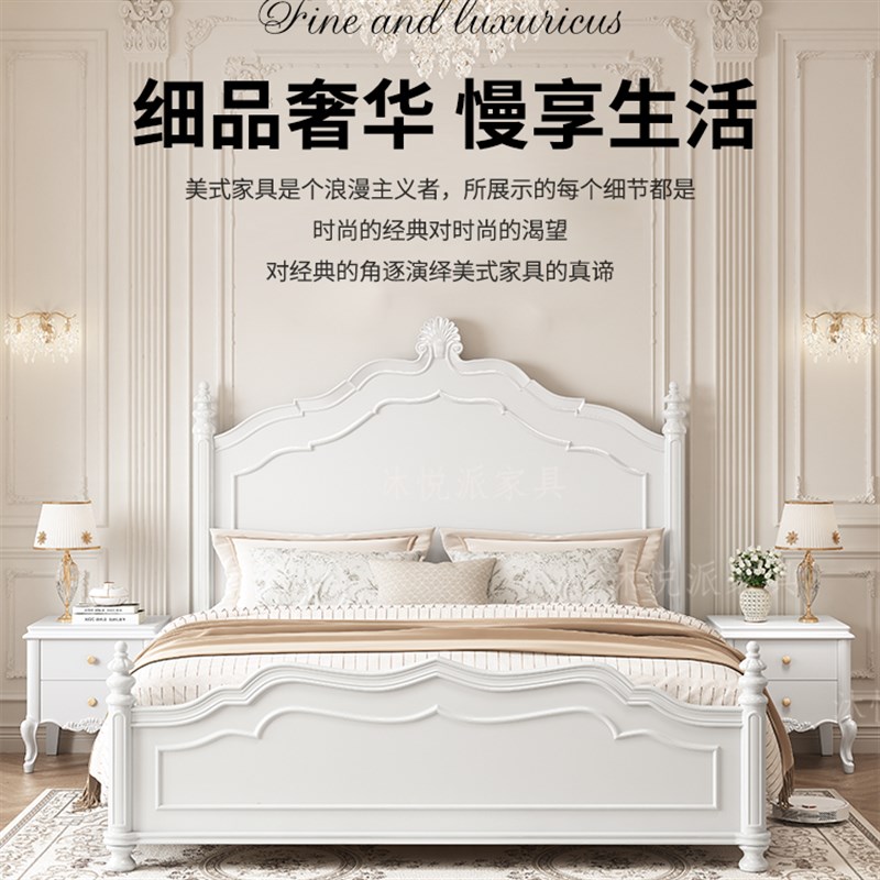 现代简约高箱储物美式全实木床白色1.5米主卧双人大床欧式公主床