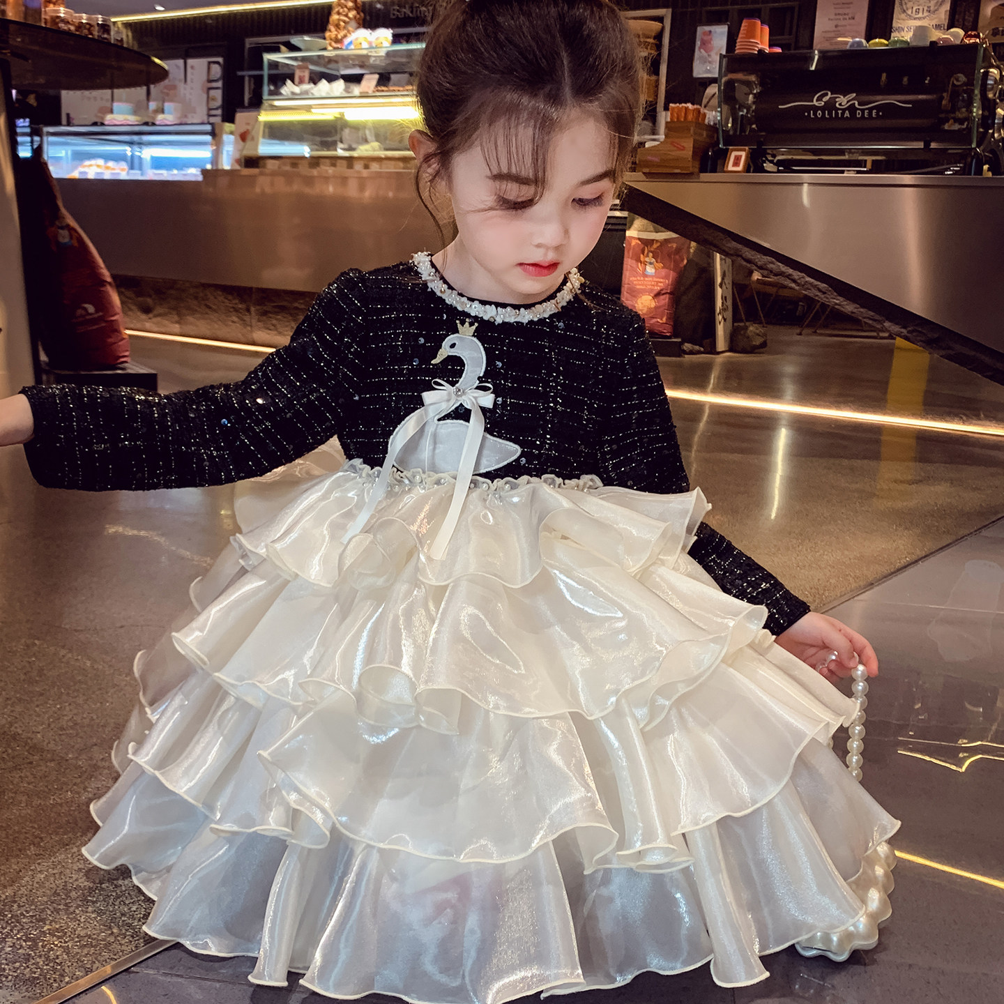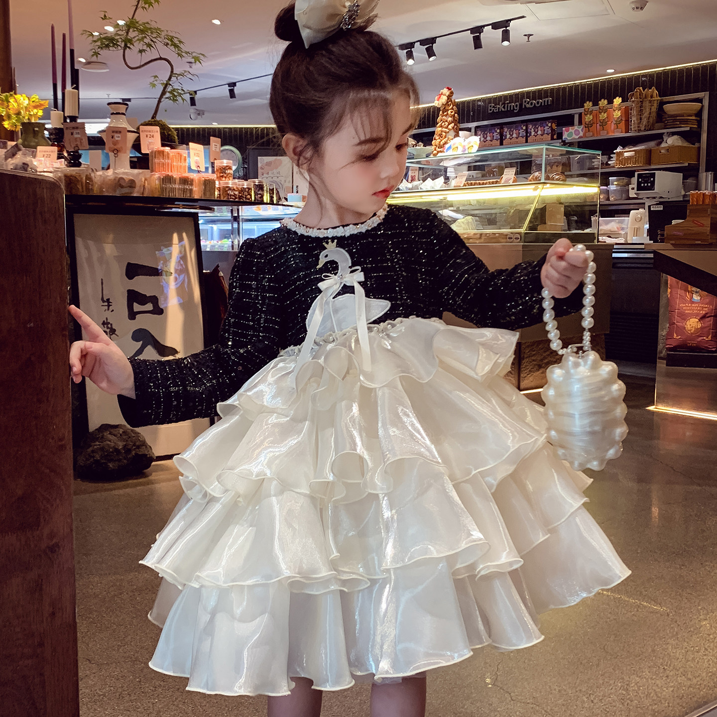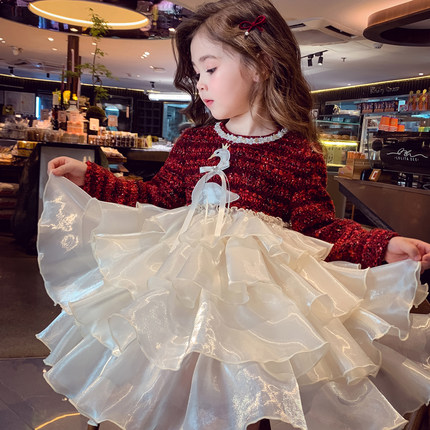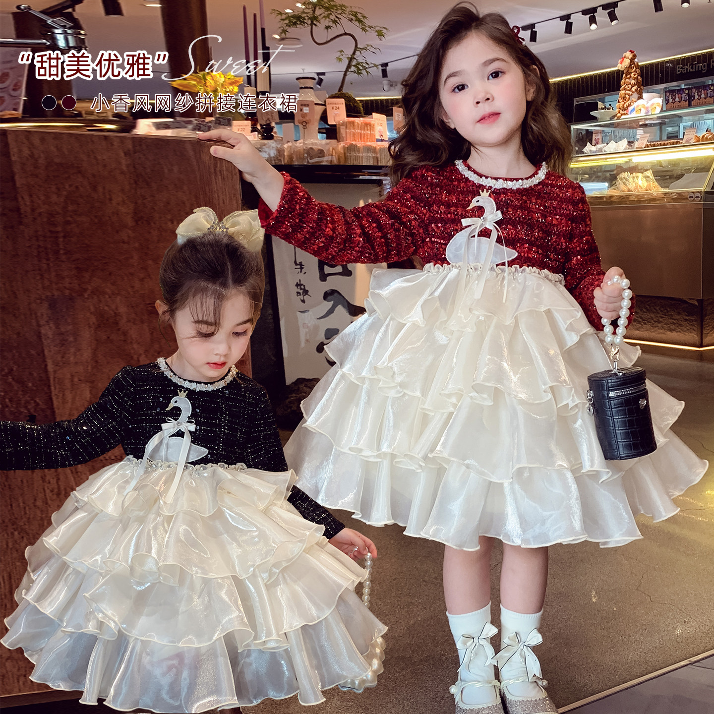 米米哈罗女童公主裙冬装2025新款儿童小香风连衣裙女孩蓬蓬礼服裙