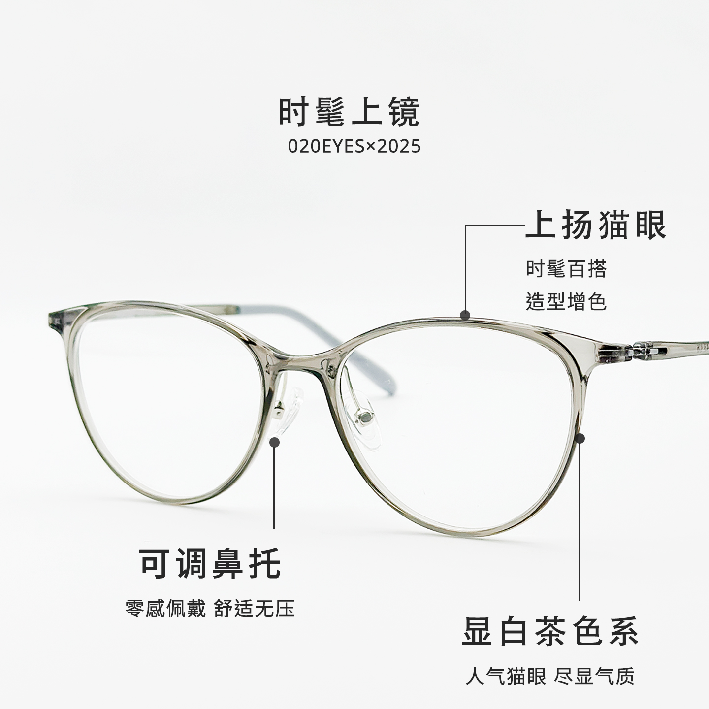 带鼻托款超轻茶色猫眼眼镜女素颜