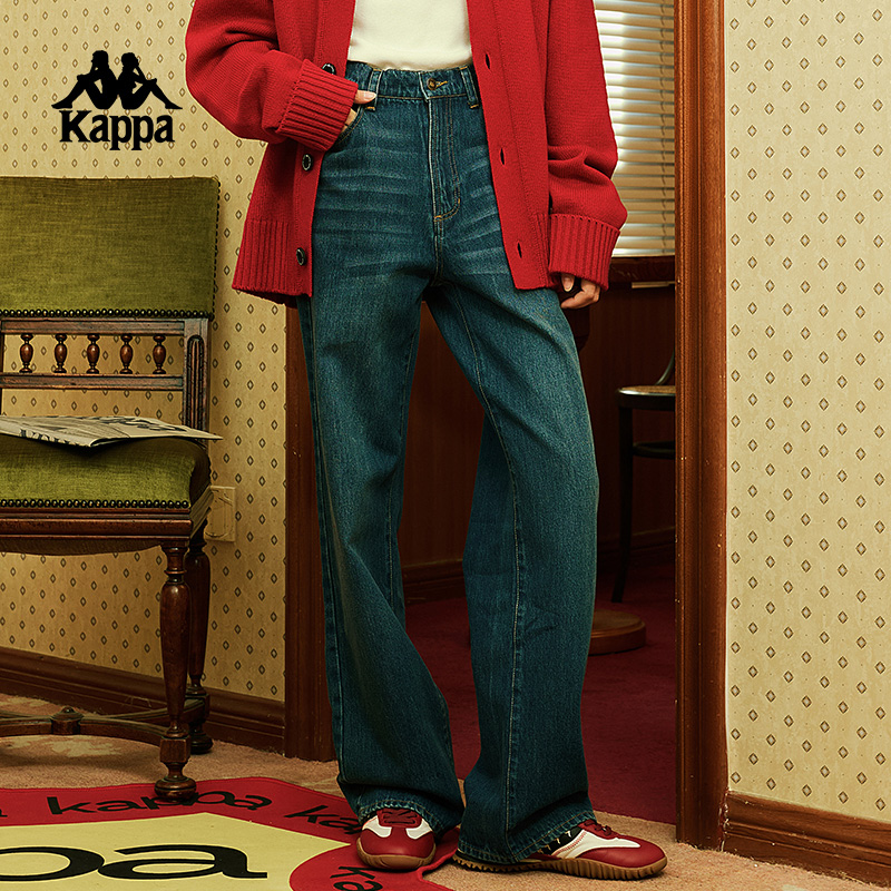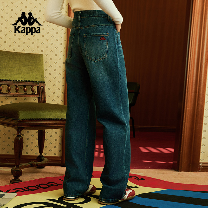 Kappa卡帕背靠背龙年新年款牛仔裤2025新款女休闲直筒裤运动裤