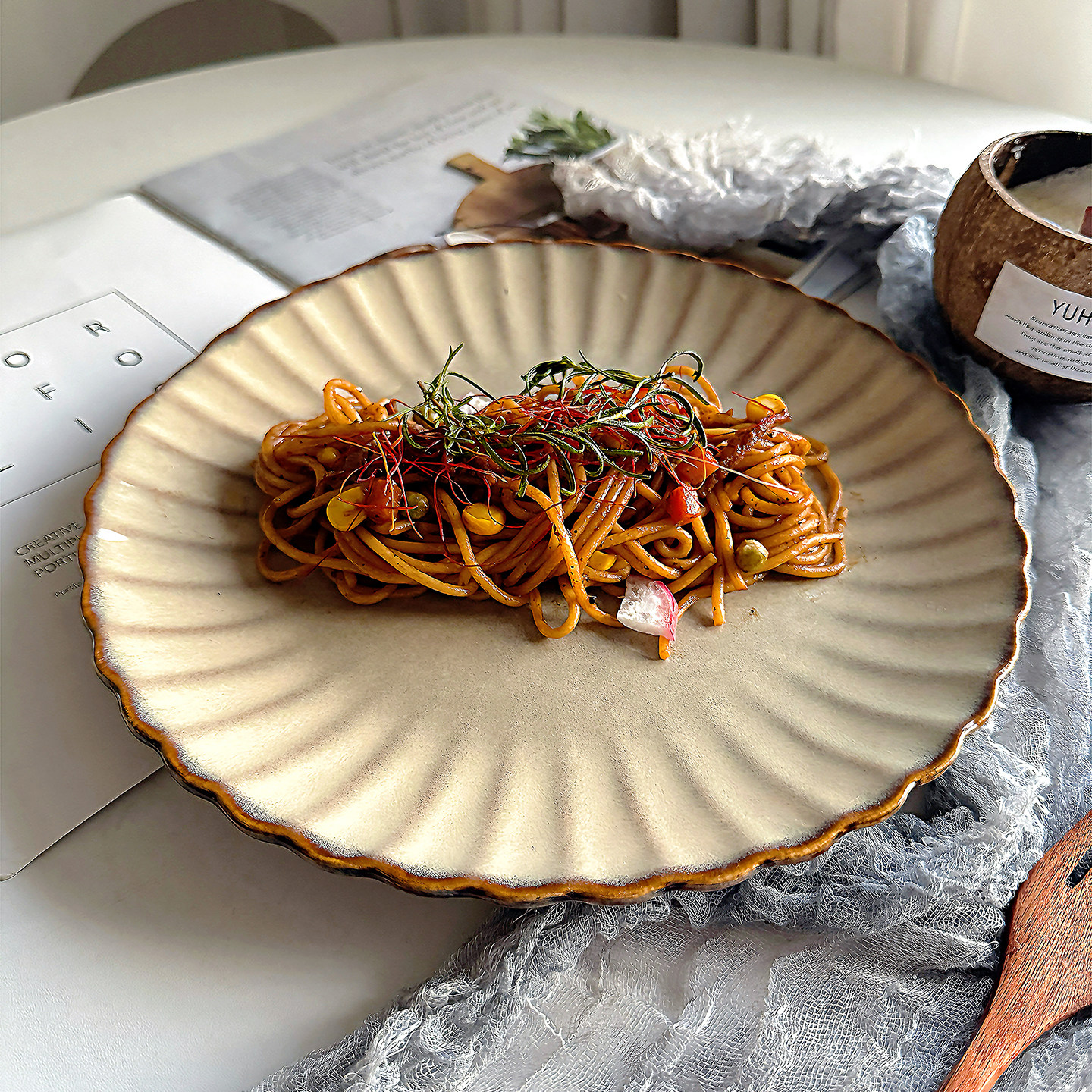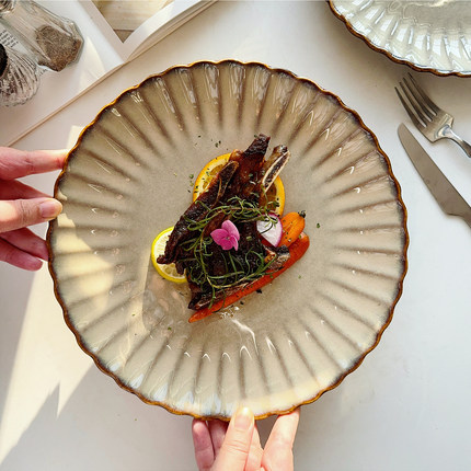 【高级复古菊花餐具】ins日式陶瓷西餐牛排盘沙拉意面大盘子瑕疵